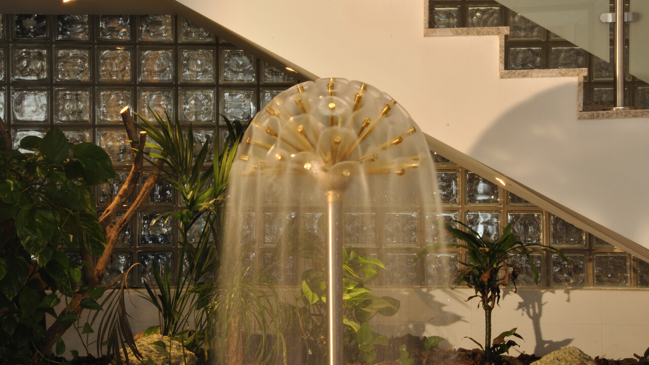 Этот вид фонтанной насадки представляет собой водяной коллектор в виде шара, в который установлены несколько, в зависимости от диаметра, сопел - лучей. Целью данной конструкции является создание большого объема распыления воды в форме сферы или полусферы. Уникальный водный рисунок впечатляюще смотрится как днем, так и вечером в подсветке струй. Фонтанная насадка сфера и полусфера отлично подходят для уличных водных объектов и для фонтанов в интерьерах торговых и офисных центров.