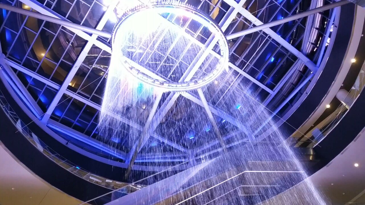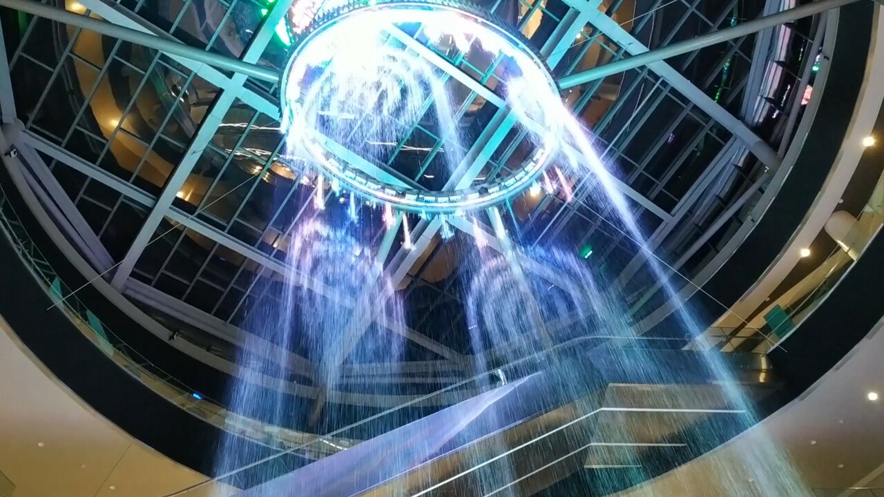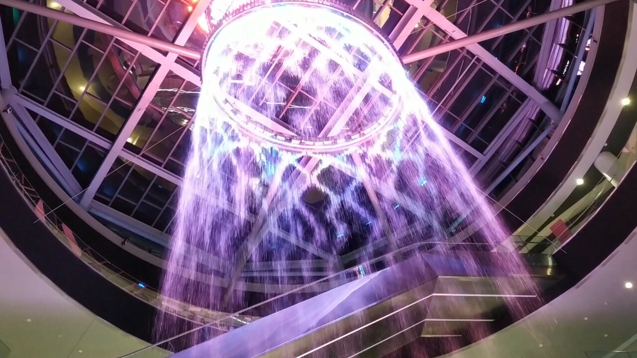 Цифровой водопад в последнее время все чаще и чаще стал использоваться в качестве украшения интерьеров зданий и сооружений различного назначения. Данная технология создает множество разнообразных узоров и фигур с помощью воды и света. Технология конструкции позволяет устанавливать распределитель и все необходимое для него оборудование на большой высоте. Этот фонтан являясь точкой притяжения посетителей торговых центров, когда люди приходят специально посмотреть на это «чудо техники» или подольше задержаться в зоне фудкорта за столиком кафе или ресторана.