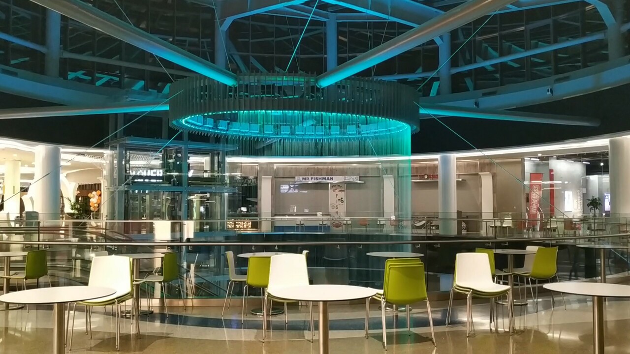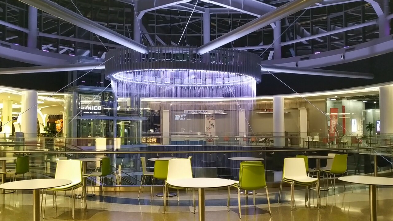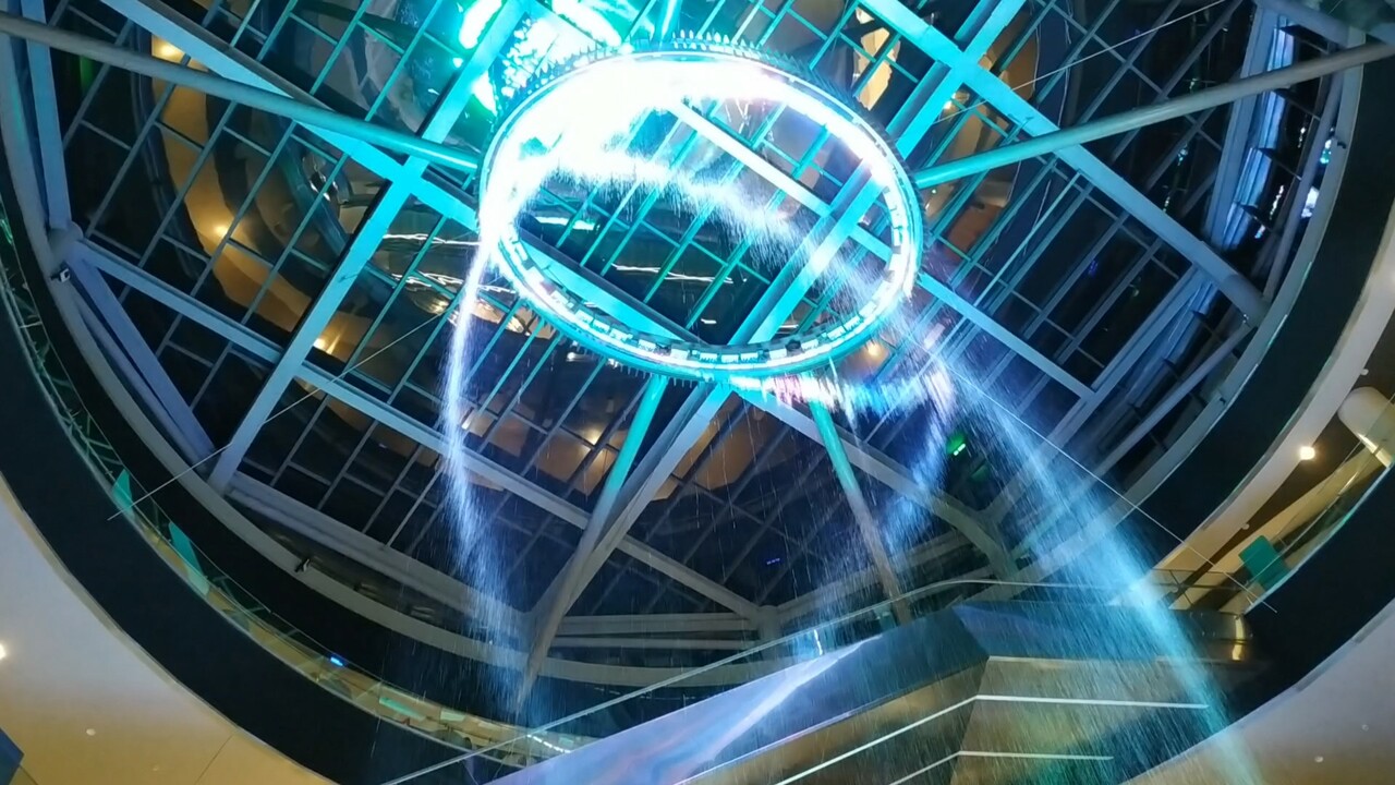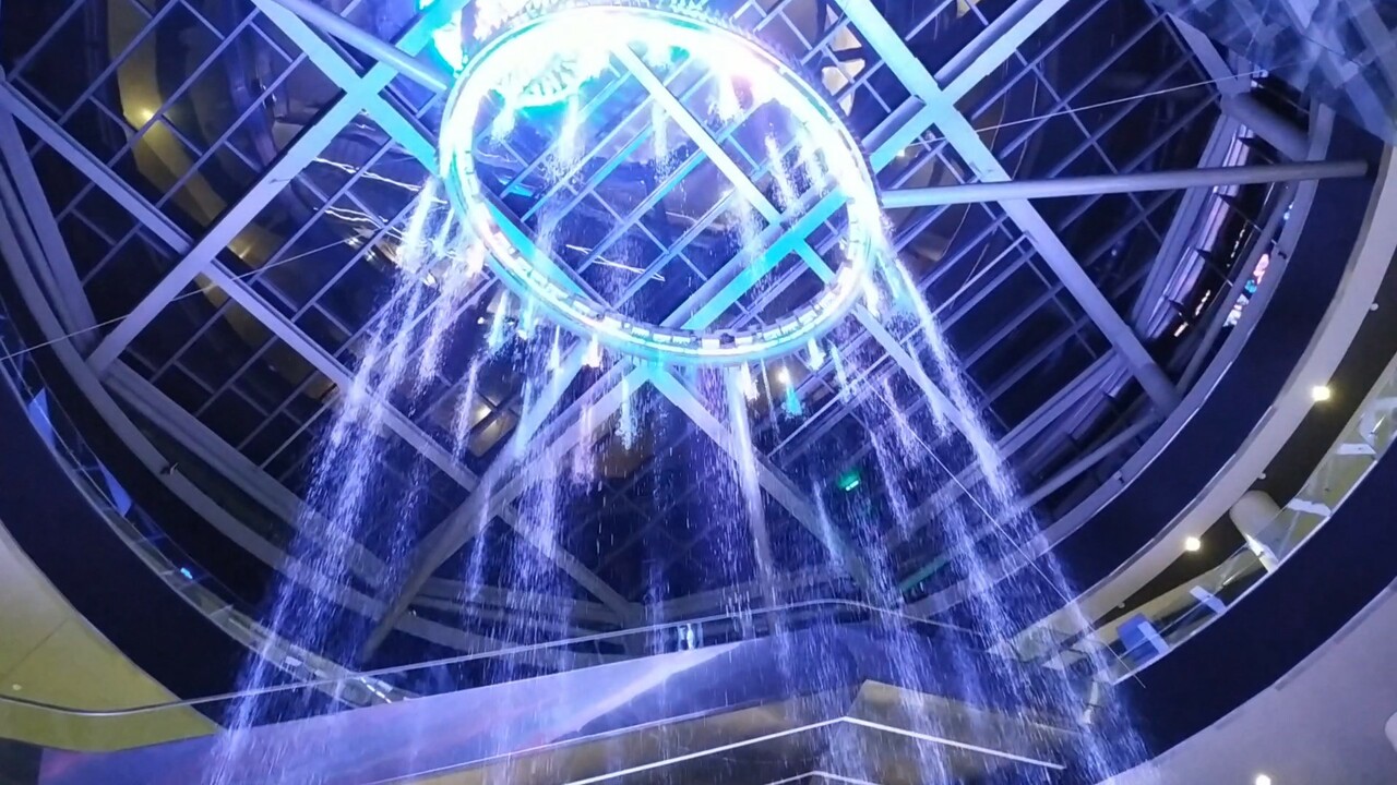 Цифровой водопад в последнее время все чаще и чаще стал использоваться в качестве украшения интерьеров зданий и сооружений различного назначения. Данная технология создает множество разнообразных узоров и фигур с помощью воды и света. Технология конструкции позволяет устанавливать распределитель и все необходимое для него оборудование на большой высоте. Этот фонтан являясь точкой притяжения посетителей торговых центров, когда люди приходят специально посмотреть на это «чудо техники» или подольше задержаться в зоне фудкорта за столиком кафе или ресторана.