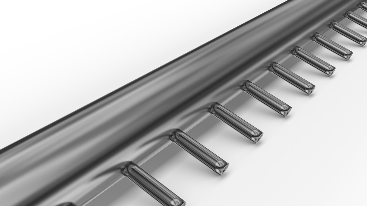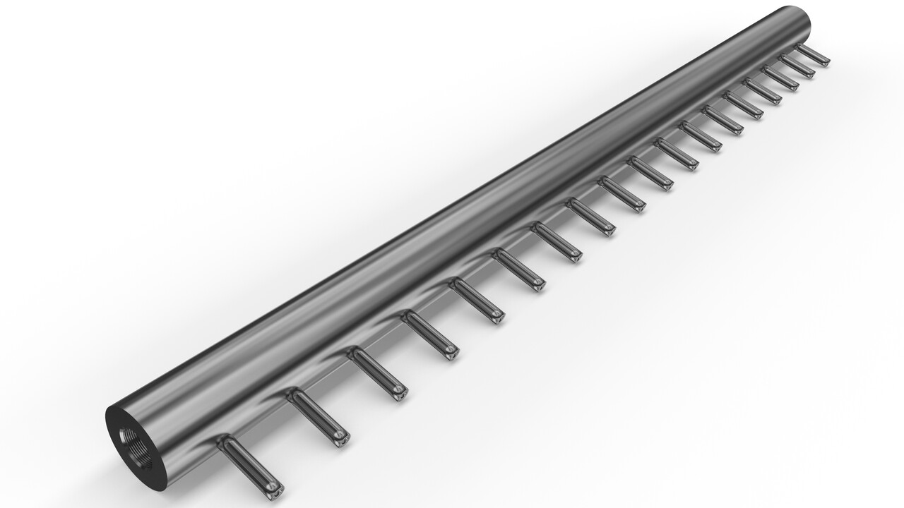 Наша компания для такого фонтана разработала несколько базовых решений по распределителю воды в зависимости от ширины и высоты падения. По запросу возможно изготовить не только прямой распределитель, но и кольцевой, овальный или другой сложной формы в зависимости от задумки дизайнера, архитектора или пожеланий заказчика.