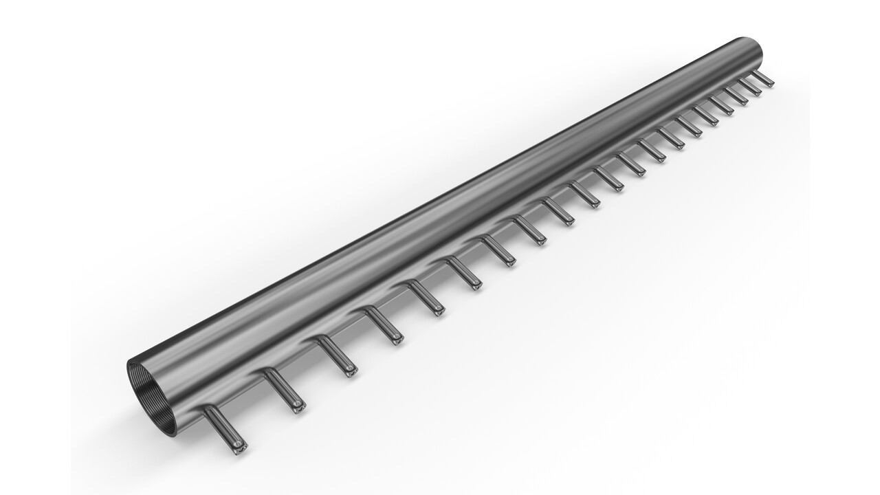 Наша компания для такого фонтана разработала несколько базовых решений по распределителю воды в зависимости от ширины и высоты падения. По запросу возможно изготовить не только прямой распределитель, но и кольцевой, овальный или другой сложной формы в зависимости от задумки дизайнера, архитектора или пожеланий заказчика.
