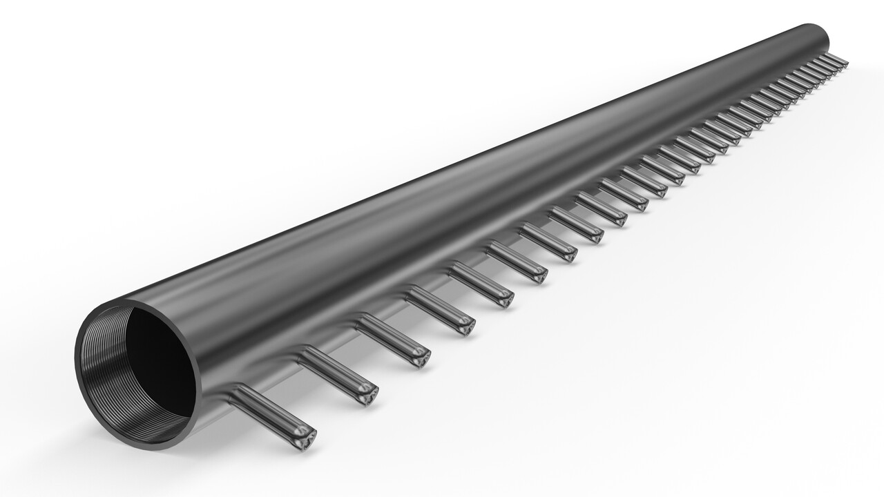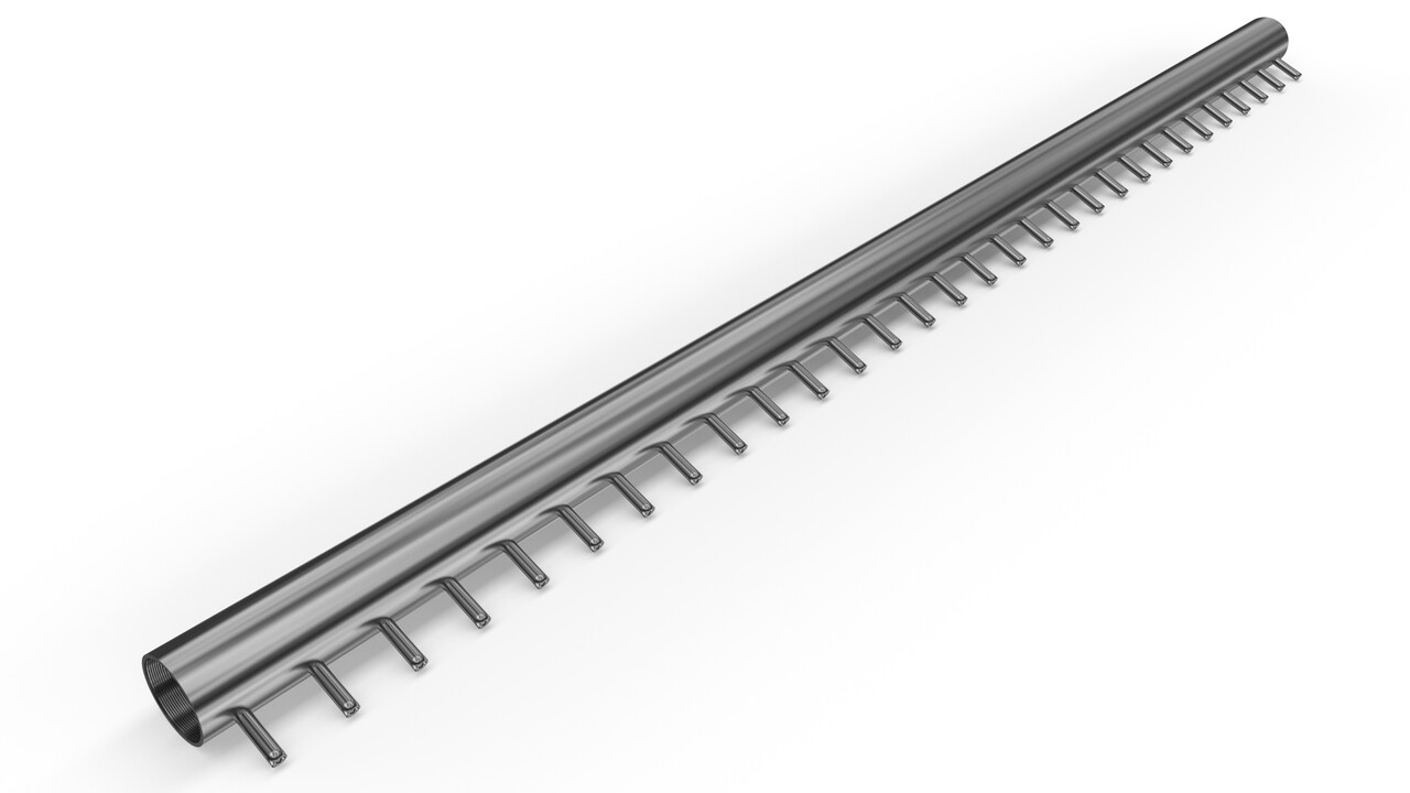Наша компания для такого фонтана разработала несколько базовых решений по распределителю воды в зависимости от ширины и высоты падения. По запросу возможно изготовить не только прямой распределитель, но и кольцевой, овальный или другой сложной формы в зависимости от задумки дизайнера, архитектора или пожеланий заказчика.