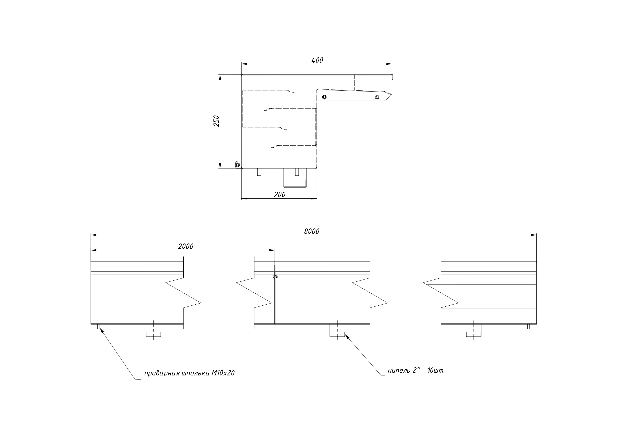 Размеры (Д х Ш х В)8000 х 400 х 250 мм