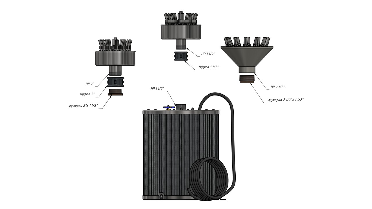 Astral Fountain Kit 4006 необходимо доукомплектовать фонтанной насадкой, переходником для подключения ее на 1½" (если необходимо), комплектом подсветки на 3 или 6 светильников, шкафом управления.