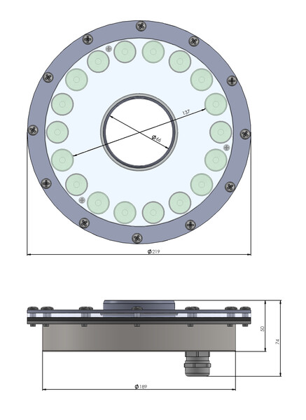 Этот подводный фонтанный прожектор - идеальное решение с точки зрения универсальности и исключительного освещения фонтанных струй. Astral Corona оснащен сверхъяркими мультикристальными диодами высокой мощности, невероятными технологиями и, прежде всего, отверстием диаметром 66 мм посередине корпуса для непосредственного монтажа форсунки в центре светильника. Таким образом, луч света точно следует за потоком воды под любым углом. При относительно невысокой потребляемой мощности, это идеальное соотношение цены и качества, когда речь идет об эффективном и при этом мощном освещении фонтана. Диаметр расстановки светодиодов в светильнике составляет 137 мм.