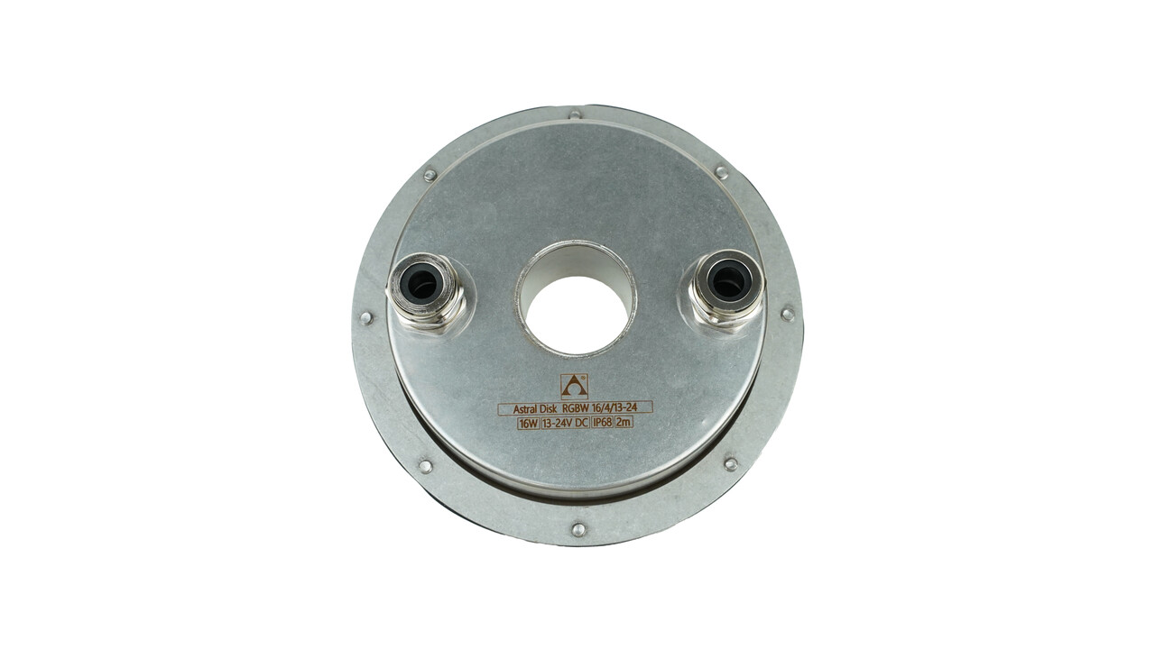 Этот подводный фонтанный прожектор - идеальное решение с точки зрения универсальности и исключительного освещения фонтанных струй. Astral Disc оснащен сверхъяркими мультикристальными диодами высокой мощности, невероятными технологиями и, прежде всего, отверстием диаметром 38 мм посередине корпуса для непосредственного монтажа форсунки в центре светильника. Таким образом, луч света точно следует за потоком воды под любым углом. При относительно невысокой потребляемой мощности, это идеальное соотношение цены и качества, когда речь идет об эффективном и при этом мощном освещении фонтана. Диаметр расстановки светодиодов в светильнике составляет 107 мм.