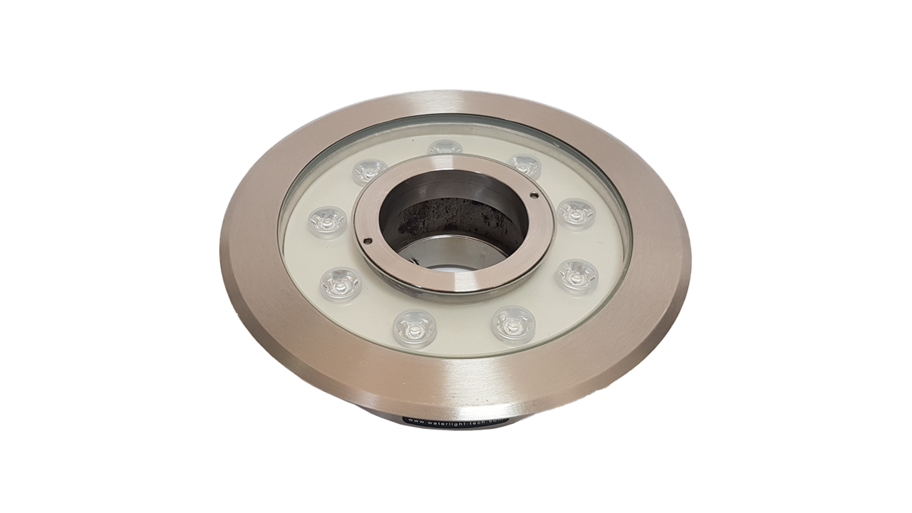 Подводный светильник в форме короны представляет собой кольцо с расположенными по кругу светодиодами. Диаметр расстановки светодиодов в светильнике Crown Led составляет 140 мм. Такая конструкция светильника позволяет освещать фонтан, получая равномерно распределенное освещение во всех частях струи воды. Кольцевой светильник Crown Led выполнен из нержавеющей стали AISI-304. Кабель светильника уже смонтирован в корпус и при необходимости его можно удлинить. Применяются светодиоды высокой производительности, яркости и мощности для полноценной подсветки фонтана. Светильники стандартно изготавливаются в версии RGBW, но по запросу можно оснастить их диодами другого цвета, например теплый белый (3.000 К).