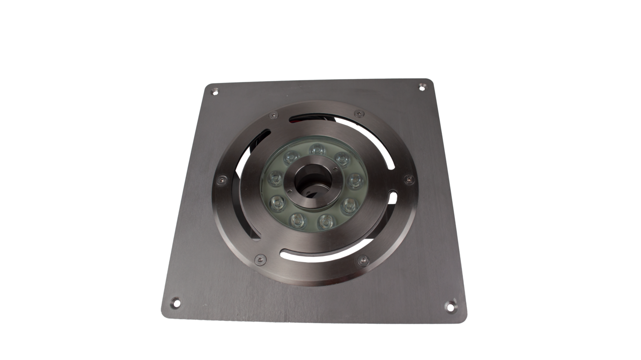 Подводный светильник в форме короны представляет собой кольцо с расположенными по кругу светодиодами. Диаметр расстановки светодиодов в светильнике Crown Led составляет 90 мм. Такая конструкция светильника позволяет освещать фонтан, получая равномерно распределенное освещение во всех частях струи воды. Кольцевой светильник Crown Led выполнен из нержавеющей стали AISI-304. Кабель светильника уже смонтирован в корпус и при необходимости его можно удлинить. Применяются светодиоды высокой производительности, яркости и мощности для полноценной подсветки фонтана. Светильники стандартно изготавливаются в версии RGBW, но по запросу можно оснастить их диодами другого цвета, например теплый белый (3.000 К).