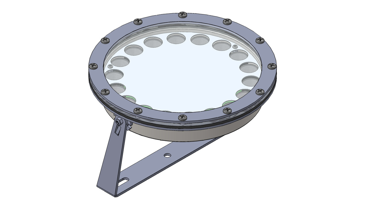 В конструкции нашего светильника продумано все до мелочей, даже специальный кронштейн, который четко фиксирует корпус в заданном положении и не разбалтывается от падающих струй фонтана и волны при эксплуатации.