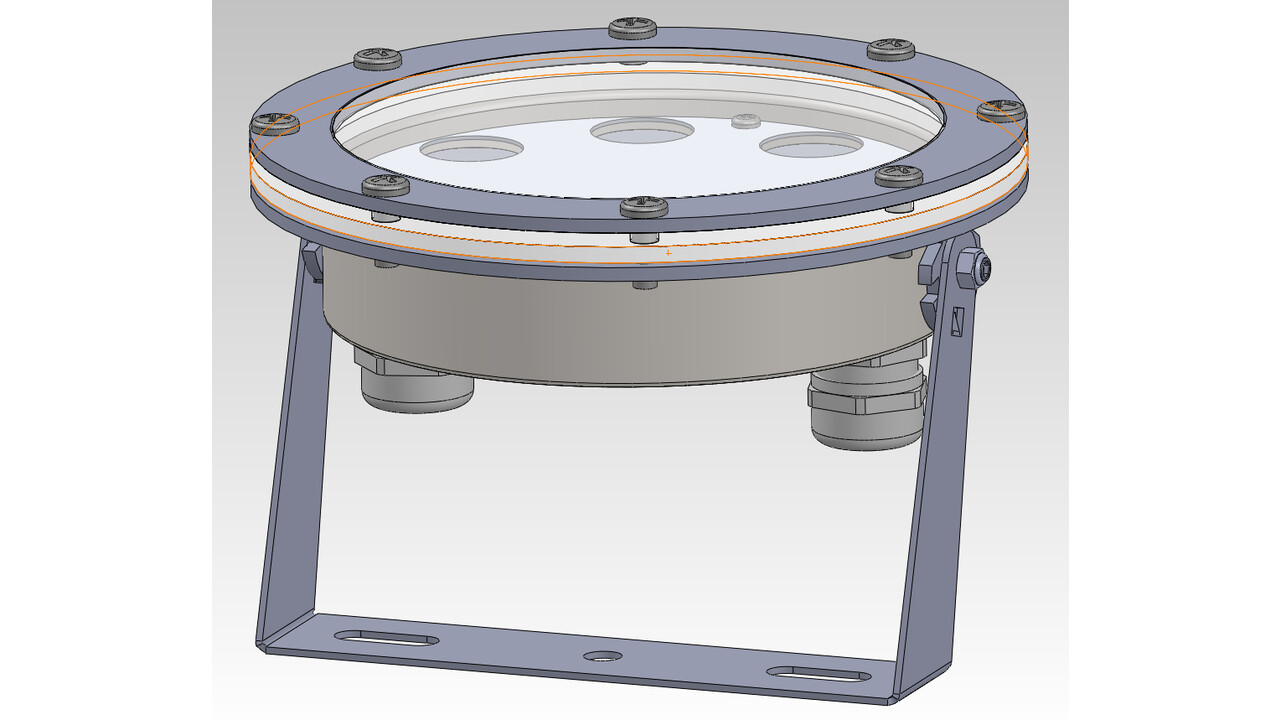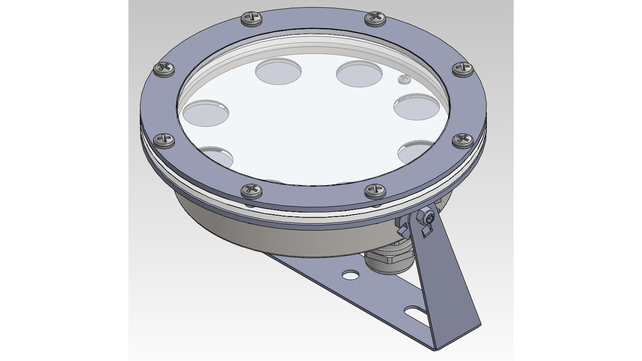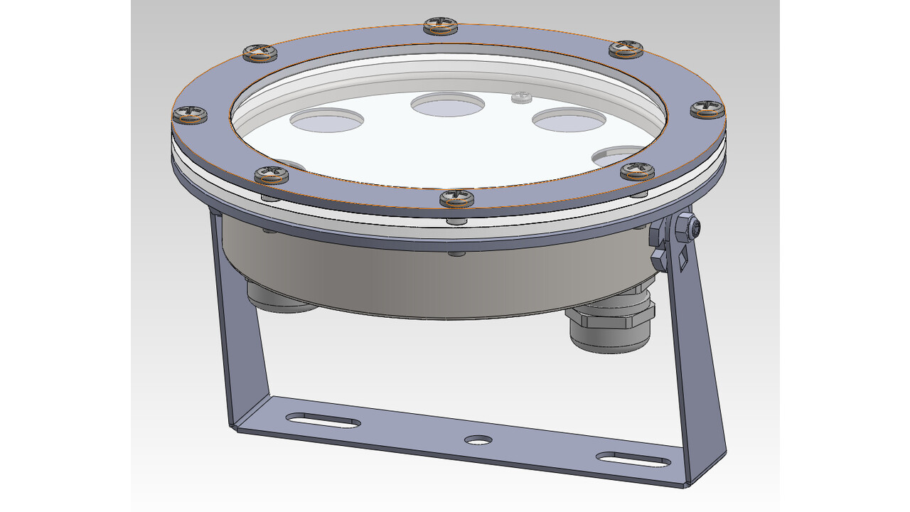 В конструкции нашего светильника продумано все до мелочей, даже специальный кронштейн, который четко фиксирует корпус в заданном положении и не разбалтывается от падающих струй фонтана и волны при эксплуатации.