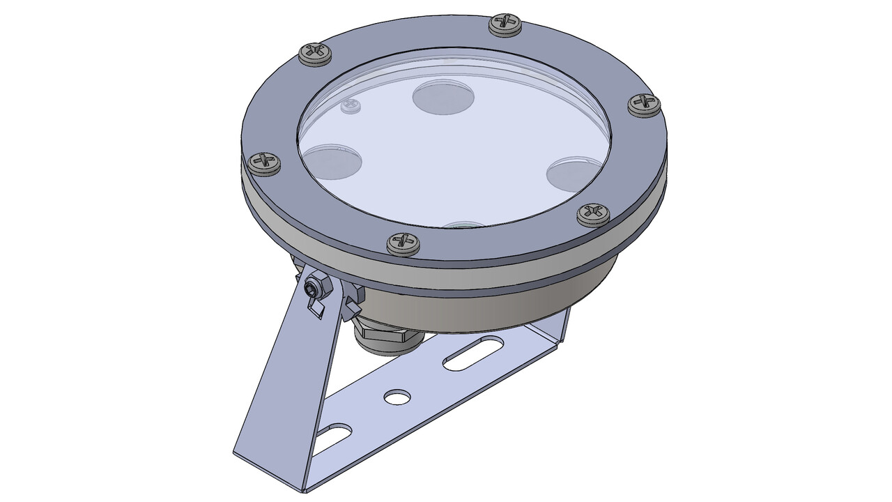 В конструкции нашего светильника продумано все до мелочей, даже специальный кронштейн, который четко фиксирует корпус в заданном положении и не разбалтывается от падающих струй фонтана и волны при эксплуатации.