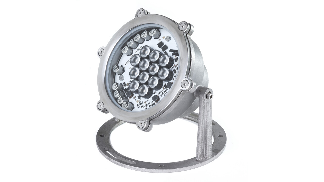 Halospot это достаточно мощный подводный светильник, обеспечивающий подсветку фонтанных струй при низком энергопотреблении: 16 Вт для одноцветных светодиодов и 30 Вт для версии RGBW. Светильник предназначен для средних фонтанов, где он работает надежно и эффективно. Прожектор сертифицированный по протоколу CE, имеет степень защиты IP68 и изготовлен из нержавеющей стали высшего качества. Подводные светильники доступны в цветах RGBW, холодный и теплый белый, а также со светодиодами других цветов. Все модели поставляются с водонепроницаемым кабелем длиной 2,5 метра.