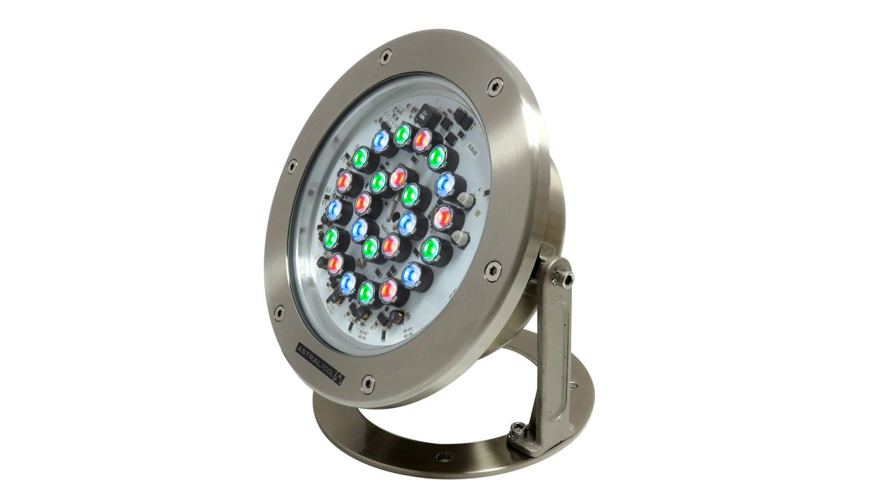 Kibele это высокомощный подводный светильник, обеспечивающий подсветку фонтанных струй при невысоком энергопотреблении: 58 Вт для одноцветных светодиодов и 60 Вт для версии RGBW. Прожектор предназначен для больших фонтанов, где он работает надежно и эффективно. Светильник сертифицированный по протоколу CE, имеет степень защиты IP68 и изготовлен из нержавеющей стали высшего качества. Подводные светильники доступны в цветах RGBW, холодный и теплый белый, а также со светодиодами других цветов. Все модели поставляются с водонепроницаемым кабелем длиной 2,5 метра.