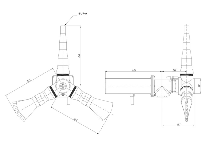 Роботизированная форсунка для фонтана Swing Nozzle Multi Jets 1-Dimensional 3 jets, 2½"