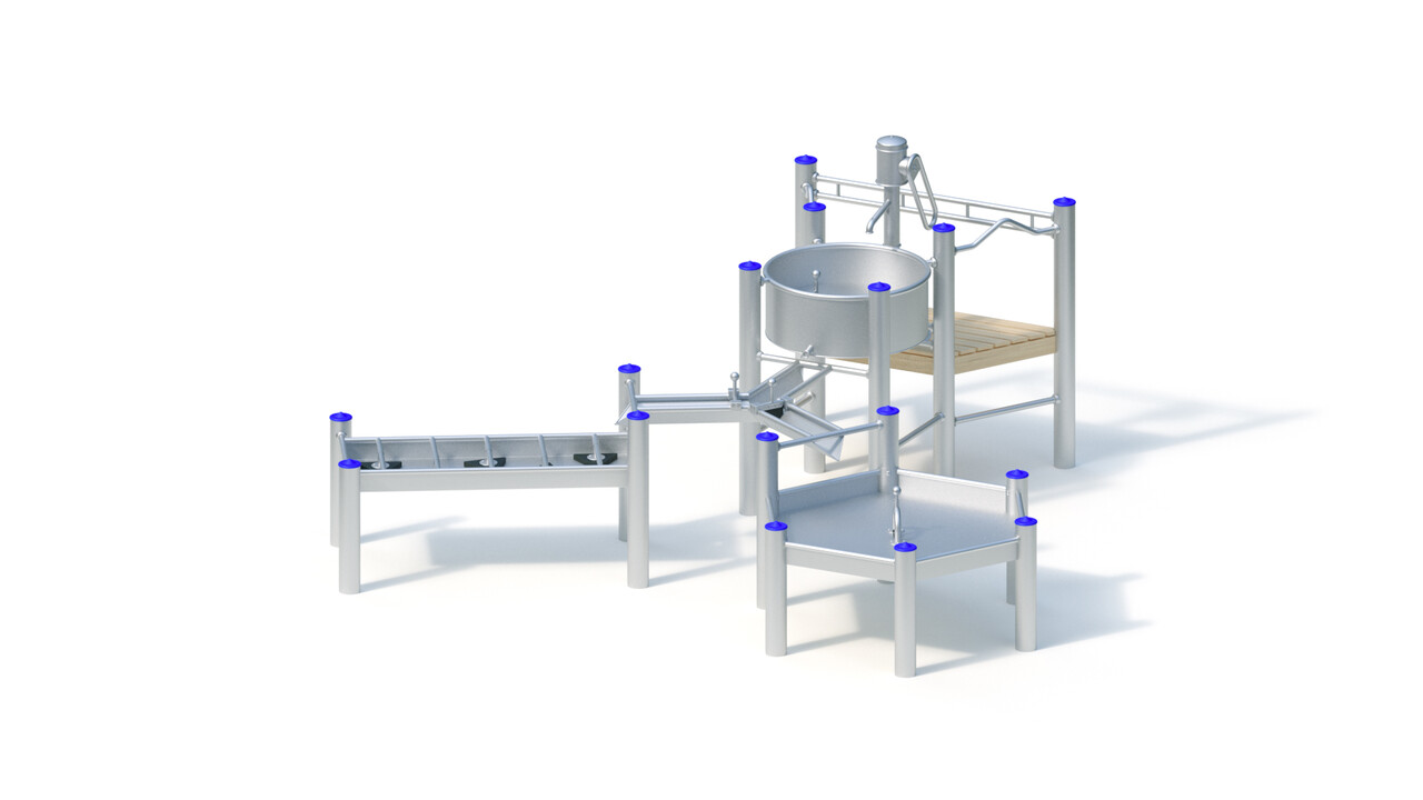 Стол. Стол размером 0,80 x 1,60 м предназначен для создания разнообразных потоков воды с помощью 5 сдвижных призм из HPL пластика. Сварная конструкция стола имеет толщину листа 2,5 мм, а диаметр трубы кромки 33,7 или 30 мм.