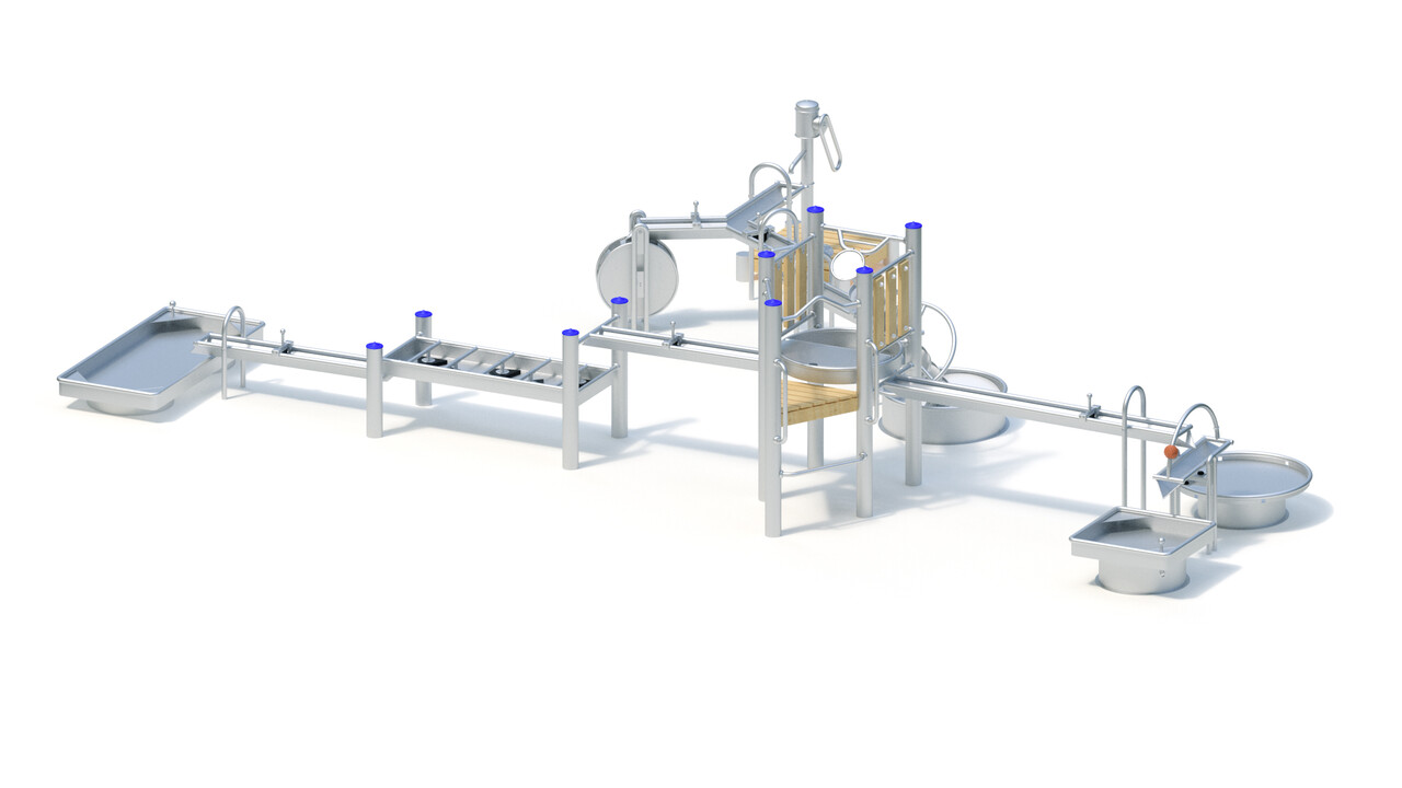 Стол. Стол размером 0,80 x 1,60 м предназначен для создания разнообразных потоков воды с помощью 5 сдвижных призм из HPL пластика. Сварная конструкция стола имеет толщину листа 2,5 мм, а диаметр трубы кромки 33,7 или 30 мм.