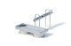 Стол. Сварная конструкция стола (арт. № 0-33445-000) с 1 сливной трубой изготовлена из нержавеющей стали. Толщина листа, из которой выполнен этот элемент водной площадки составляет 2,0 мм, диаметр трубы кромки 38 мм. Труба для слива воды имеет резиновый конус и замком для полного удаления воды. В углах стола расположены 4 полки. Крепление основания происходит с помощью анкеров нижнего фланцевого кольца.