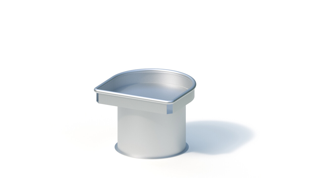 Сварная конструкция лотка с 2 отверстиями изготовлена из нержавеющей стали. Толщина листа, из которой выполнен этот элемент водной площадки составляет 2 мм, диаметр трубы кромки 38 мм.