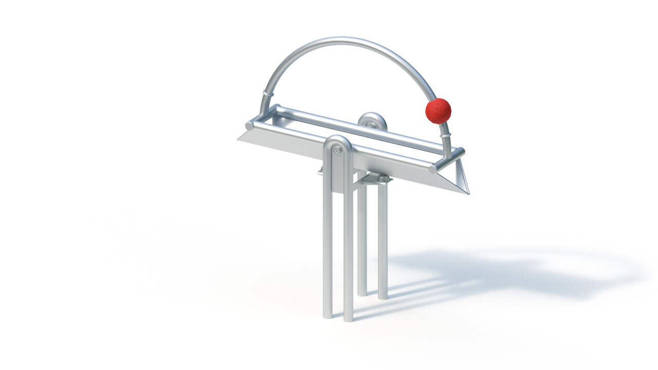 Сварная конструкция лотка изготовлена из нержавеющей стали. Толщина листа, из которой выполнен этот элемент водной площадки составляет 2,5 мм, диаметр трубы кромки 38 мм. Лоток обладает регулируемым амортизирующим механизмом наклона для двустороннего распределения воды, бортами и каналом для воды с трубой в качестве защиты кромки Ø 38 x 2 мм. Фундаментный блок для монтажа элемента водной площадки изготавливается по месту. Необходимо отлить бетонный блок размером 0,50 х 0,70 х 0,50 м в количестве 1 шт., объем бетона составит 0,18 м³.