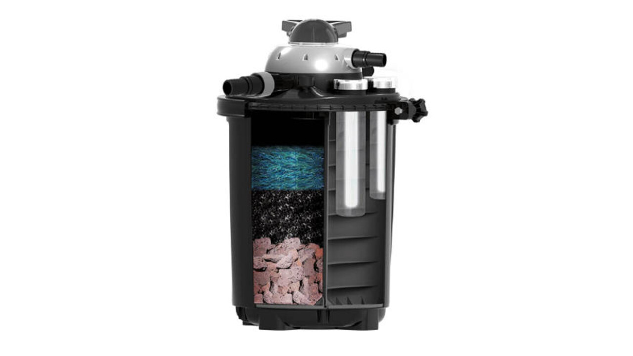 Напорный фильтр для пруда серии Clear Control обеспечивают трехступенчатую очистку воды, делая водоем чистым и прозрачным. Фильтр снабжен 6-ти ходовым клапаном, в том числе для системы обратной промывки, которая позволяет легко очистить рабочую камеру фильтра от скопившихся загрязнений. Удобная конструкция Clear Control делает возможным на 2/3 высоты корпуса вкопать фильтр в землю и тем самым позволяет легко задекорировать его в ландшафте. Воду после фильтра можно подать на ручей или водопад высотой до 3 метров от уровня выходного патрубка фильтра. С помощью трехступенчатого способа фильтрации воды достигается максимальный результат: