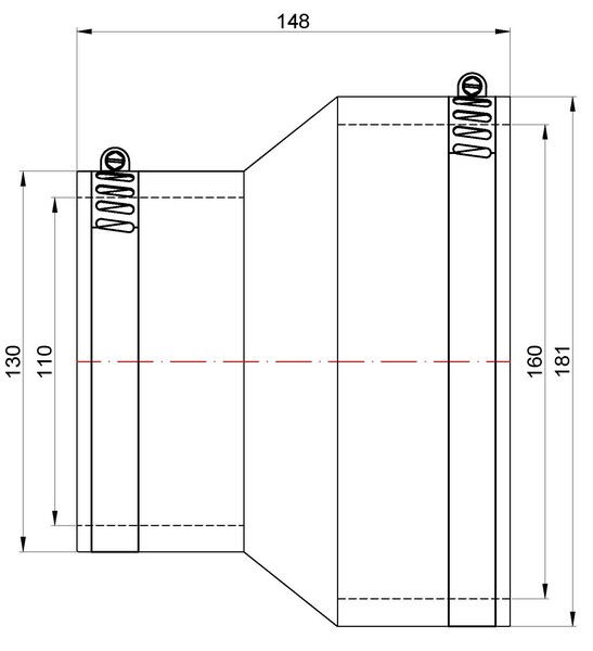 Переходная муфта резиновая соединения трубопроводов прудового оборудования, 6"-4", Ø160-110мм