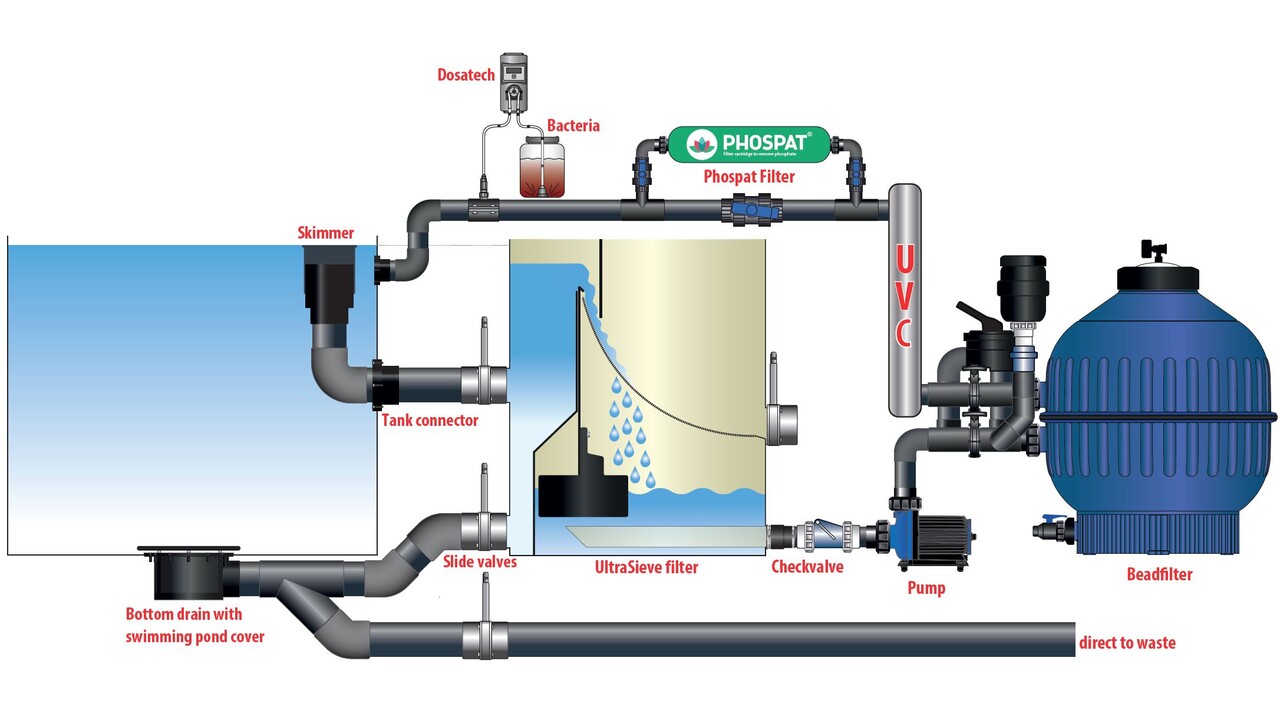Донный возврат воды для пруда используется как для слива воды из водоема, так и для подачи воды со дна пруда на систему фильтрации. Верхняя крышка препятствует попаданию внутрь трубопровода рыб, растений, камней и обеспечивает хорошее всасывание.