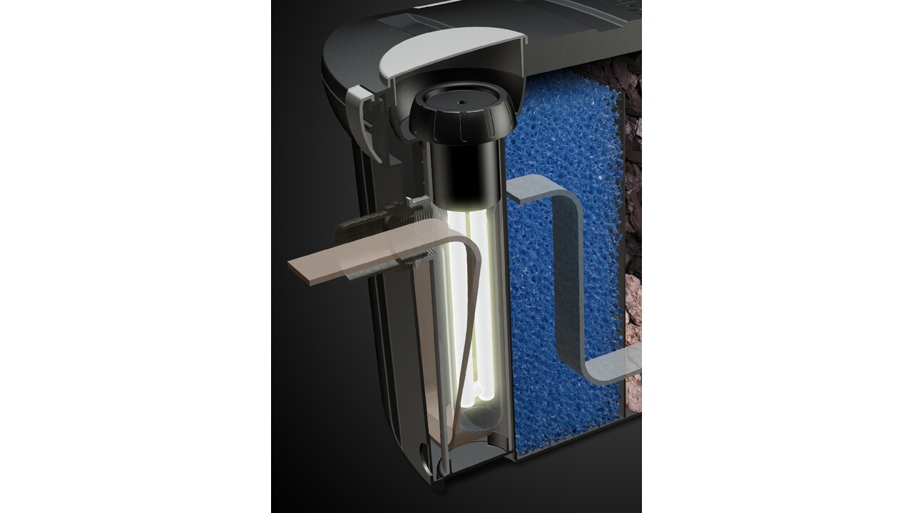UV-C Unit при помощи УФ-излучения в кратчайшие сроки очищает водоем и делает в нем воду кристально прозрачной, создает благоприятную среду для рыб и растений, одновременно уничтожая патогены и водоросли.