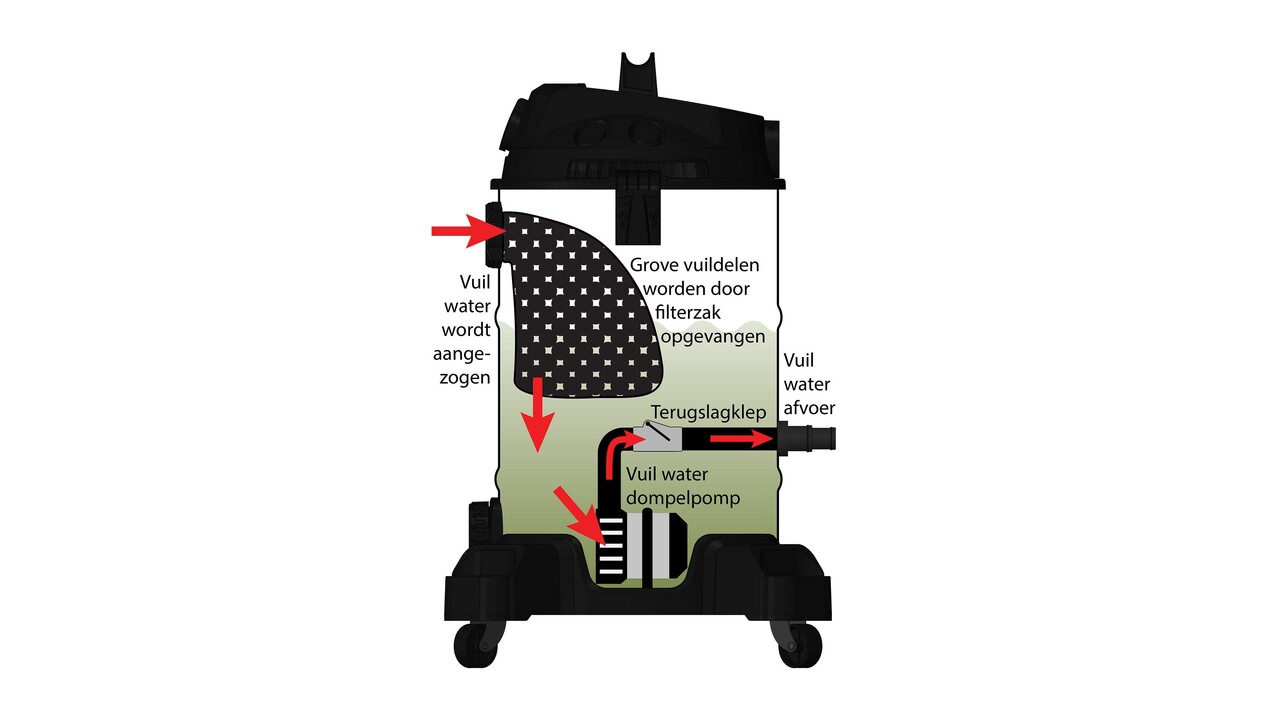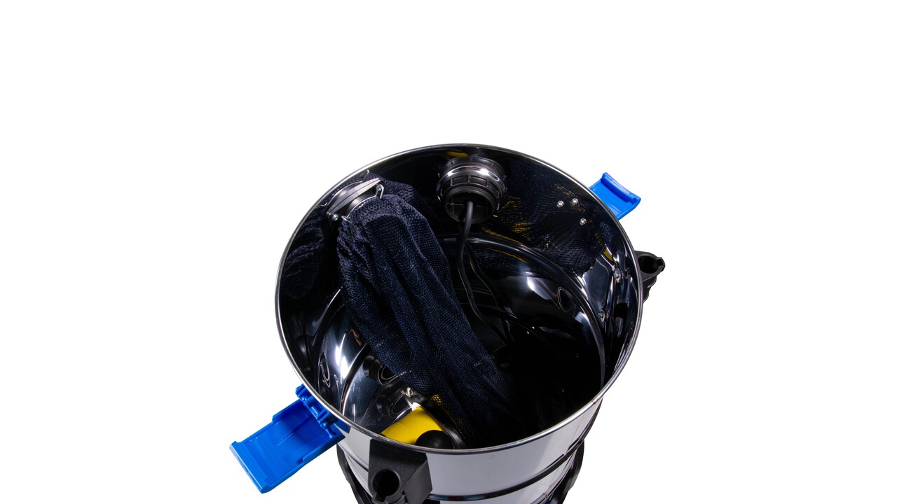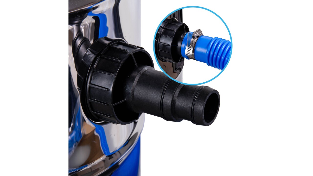 Новый водный пылесос для эффективного ухода за прудом без промедления является модель Pond vacuum cleaner Pro. Пылесос оснащен встроенным насосом для грязной воды, который непрерывно откачивает воду из емкости. Всасываемая вода сначала проходит через мешок размером 30 х 50 см и ячейкой 2...3 мм для сбора листьев, водорослей, веток, камней, субстрата и т. д. Мешок для чистки легко открывается с помощью молнии с крупными зубьями. Далее вода попадает в емкость с внутренним погружным насосом и после него, например, в канализацию. Если потери воды нежелательны, воду можно перекачивать на более тонкий фильтр (например, сетчатый фильтр, барабанный фильтр или фильтр из нетканого материала). В качестве сливного шланга можно использовать стандартный шланг Poolflex диаметром 32 или 38 мм. Это делает работу с нестандартной длиной сливного шланга очень простой и доступной. Благодаря всасывающей турбине мощностью 1200 Вт можно очищать водоем на глубине до 2,5 метров. Дополнительную защиту турбины придает фильтрующая губка 13х15 см.