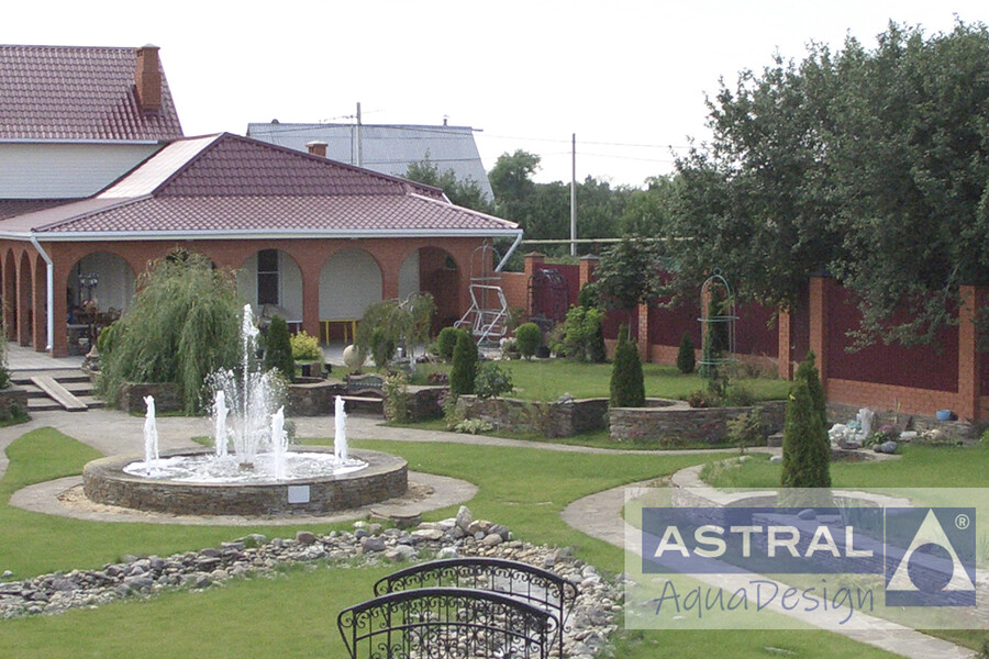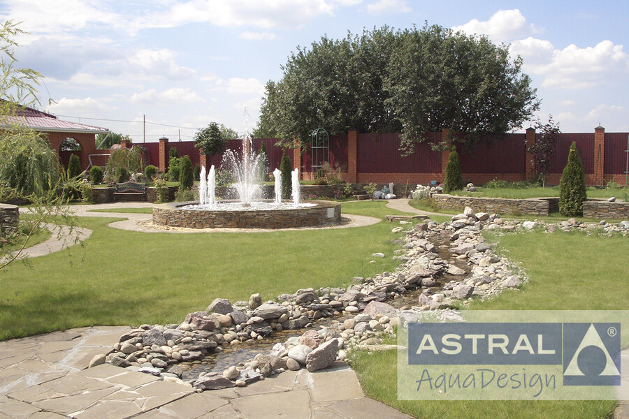 Фонтаны с пенными насадками и изливами а также ручей украшают частную территорию в Липецкой области. Разработка проекта и поставка оборудования велась при непосредственном участии наших сотрудников. В ходе работ, были учтены все особенности ландшафта.