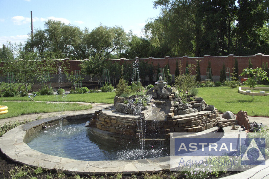 Строительство фонтанов на частной территории - распространенный прием ландшафтного дизайна. Журчание воды умиротворяет и настраивает на позитивный лад., способствуя полноценному отдыху после напряженного дня.