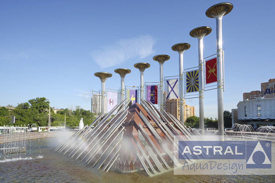 Наши сотрудники разработали проект и обеспечили поставку оборудования. Кроме того, недавно была проведена реконструкция фонтана - добавлены новые струи.