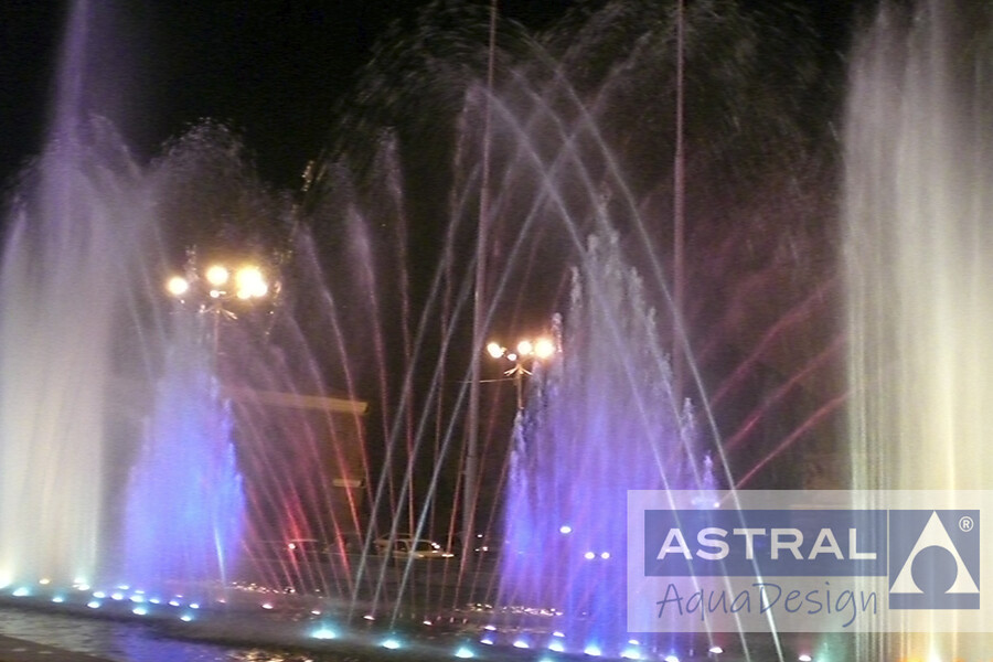 Цветодинамический фонтан построенный на площади стал первым в Иркутске современным водным объектом созданным за долгие годы. Проект, разработанный при участии наших сотрудников получил высокие оценки горожан. Высокие пенные столбы, образующие геометрический рисунок могут достигать 7 метров.