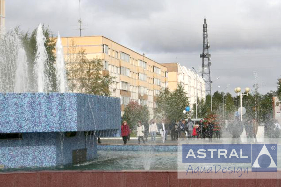Большой цветодинамический фонтан построен на площади Когалыма. Он состоит из двух чаш. Множество насадок создают впечатляющую водную картину: кольцевые, пенные, многоструйные. Из верхней чаши вода переливается в нижнюю. В вечернее время включается подсветка. Проектирование, строительство и шеф-монтаж прошли при участии наших сотрудников.