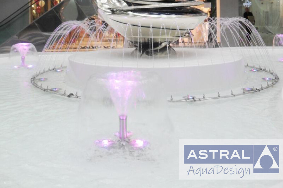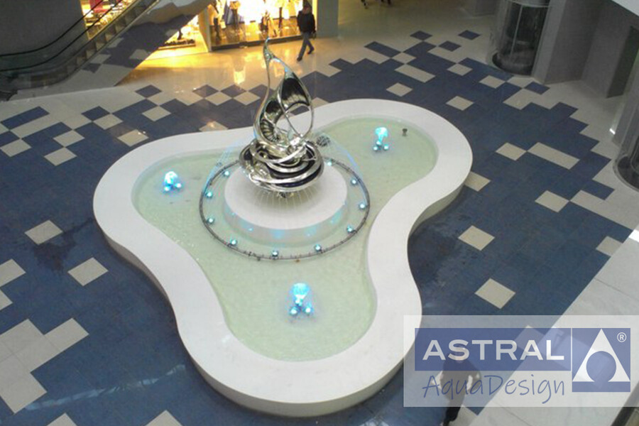 В атриуме ТРЦ Гэлакси в Улан-Уде построен цветодинамический интерьерный фонтан. Его футуристические формы подстать названию торгового комплекса имеют плавные изгибы и белоснежные борта чаши. В его центре - скульптура выполненная из металла созданная местным скульптором Дмитрием Будожабай. За водный рисунок отвечает фонтанное кольцо (диаетром 4 метра) и три пленочных насадки.