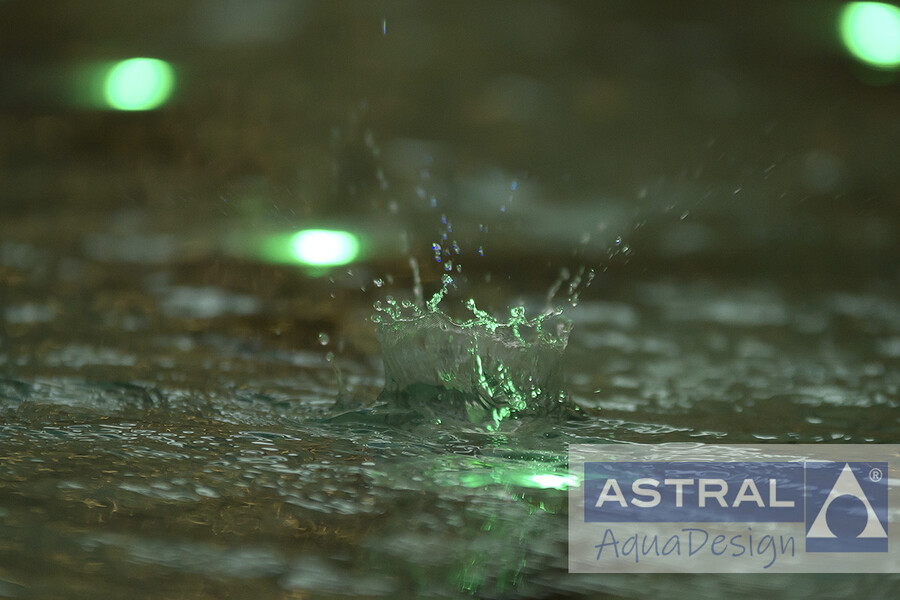 Чаша необычной формы с переливами, в ее верхней части практически гладкое зеркало воды, поэтому вылетающие идеально круглые капли становятся сюрпризом для зрителя.