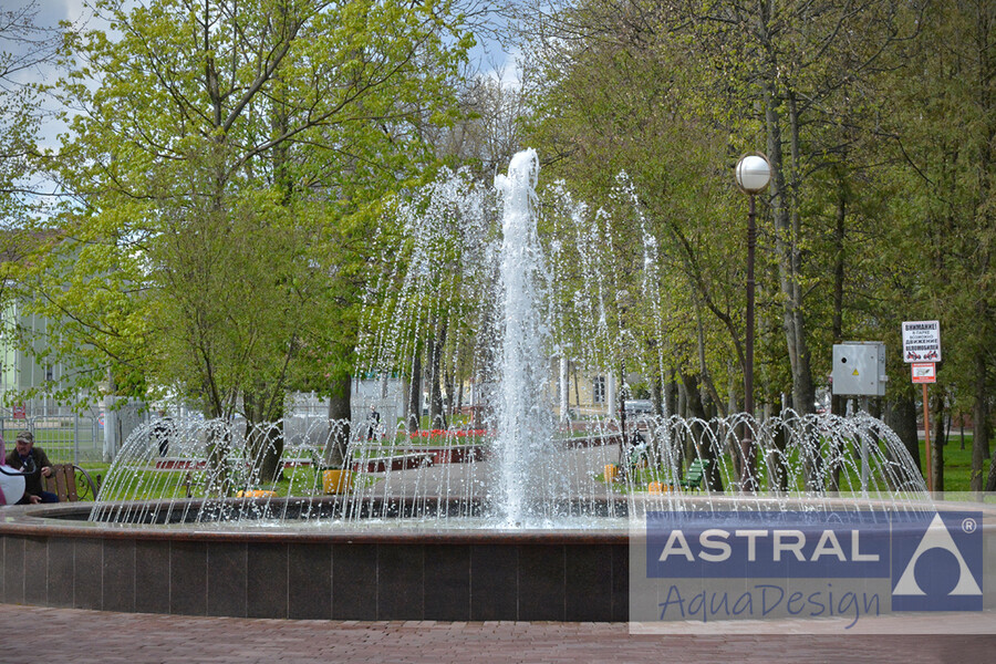 В парке города Слуцк (Беларусь) к 900-летнему юбилею города был построен цветодинамический фонтан. Его круглая чаша облицована плиткой и имеет диаметр 9 метров. Водная композиция образована двумя кольцевыми насадками создающими 153 струи. Программное управление фонтаном позволяет варьировать высоту струй от 2 до 5 метров. За подсветку отвечают яркие RGB светильники.