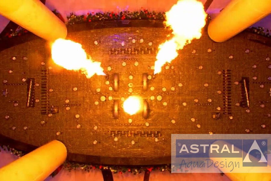 Водное шоу стало открывало праздничное мероприятие под специально написанный гимн компании. Композицию составляет множество струй образованных различными видами насадок: пенные, одноструйные, многоструйные, поворотные и другие.