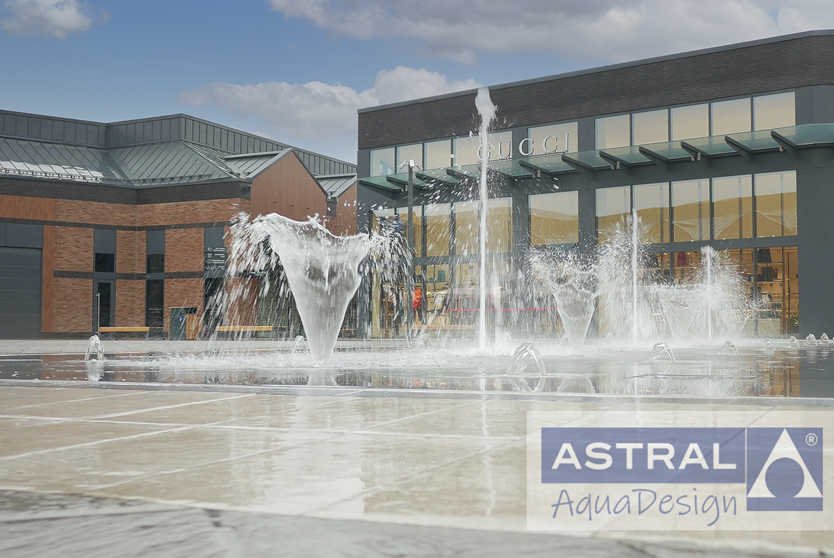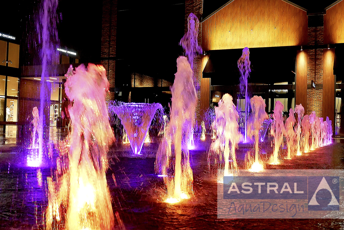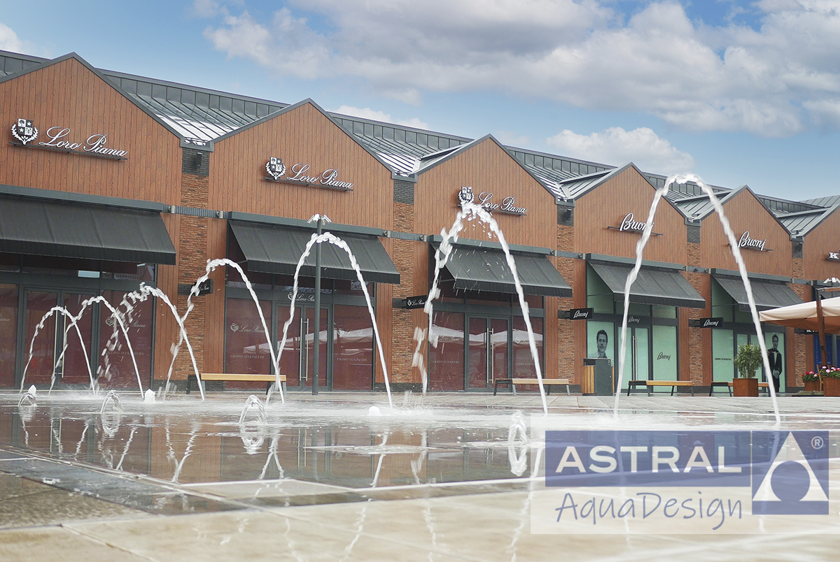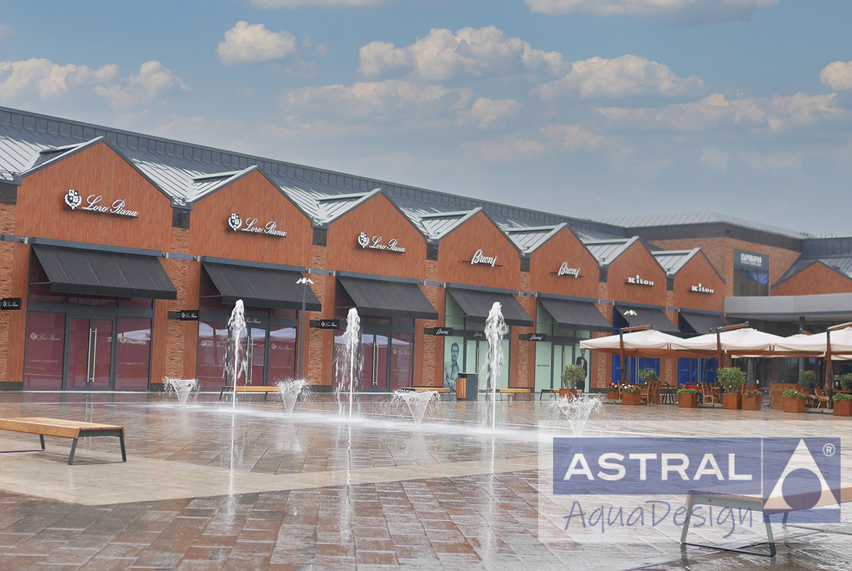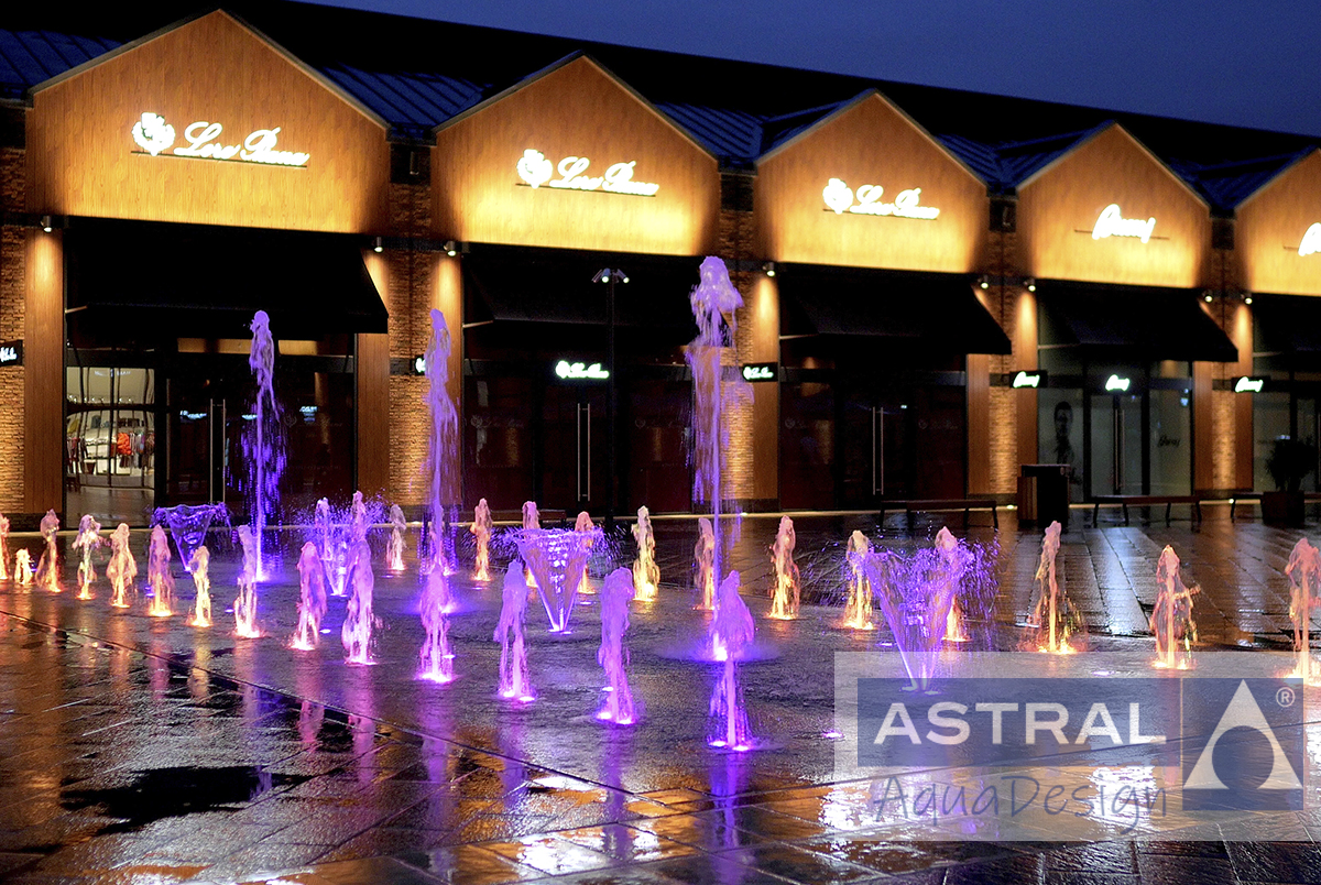 Цветодинамический пешеходный фонтан на территории The Outlet Moscow