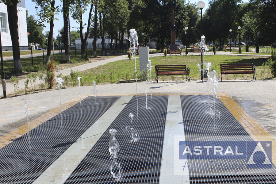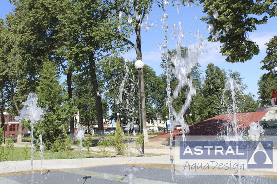 Пешеходный цветодинамический фонтан украшает сквер Памяти и Славы в поселке Жуковка (Брянская область). Его построили в рамках акции «Решаем вместе», где жители выбирали места для благоустройства, путем голосования. Запуск состоялся в июле 2021 года.
