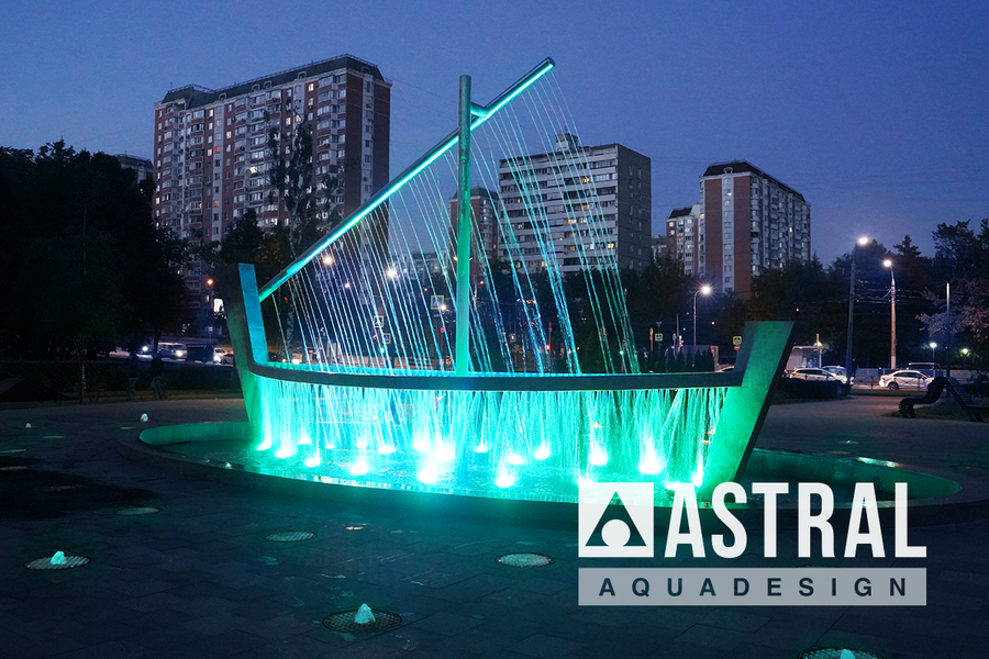 Комбинированный фонтан украсил собой Черноморский бульвар на юго-западе Москвы. Его запуск состоялся в сентябре 2021 года. Фонтанный комплекс представляет собой сочетание скульптурного и сухого фонтана. Главная композиция выполнена в виде парусной лодки. Вокруг нее, в сухой зоне установлено 40 форсунок с пенным эффектом. Высота струй может достигать 1,5 метров. Размер чаши составляет 12х6 метров. В вечернее время включается яркая подсветка струй.