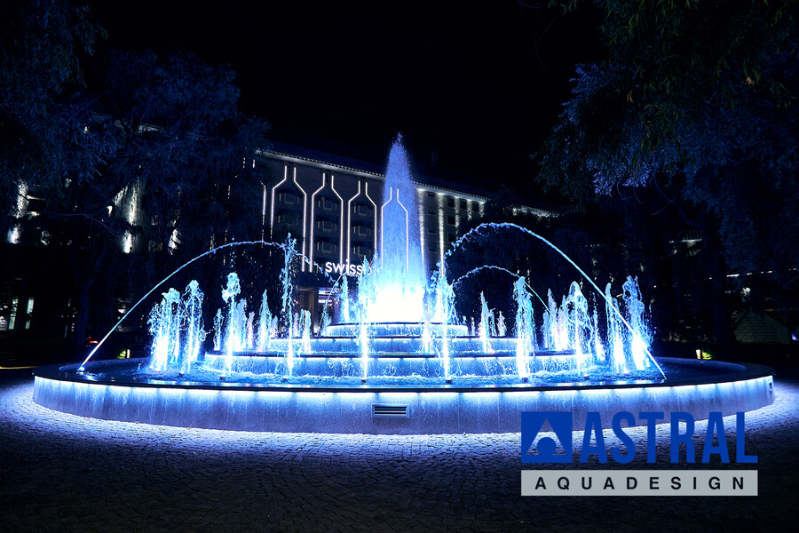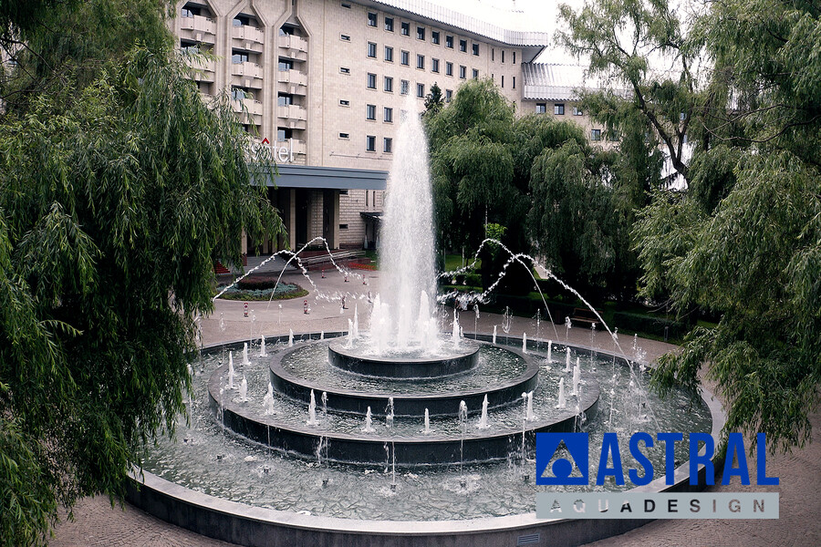 В конце прошлого года напротив гостиницы Swissotel в городе Алматы (Казахстан) был введен в эксплуатацию новый фонтан. Строительство фонтана стало визитной карточкой комплекса.