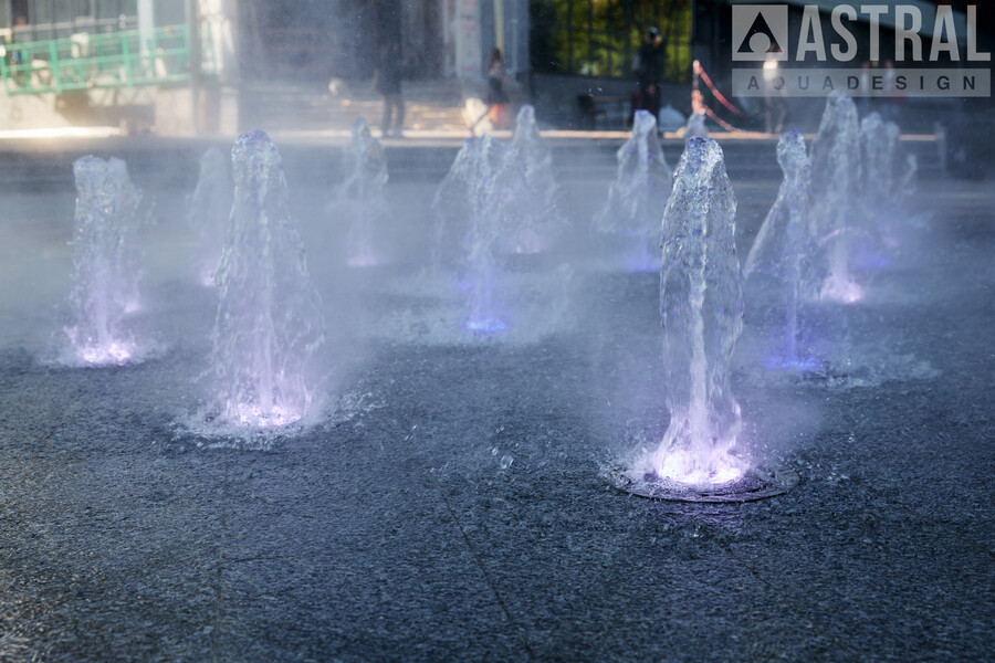 Фонтан был реализован совместно с фирмой Aqua Engineering, где специалисты нашей компании приняли участие в поставке фонтанного оборудования.