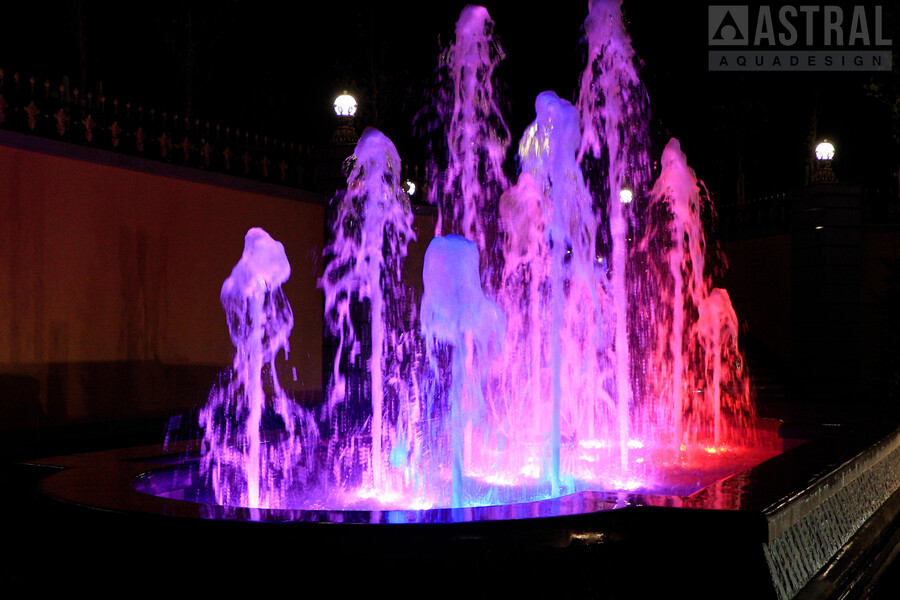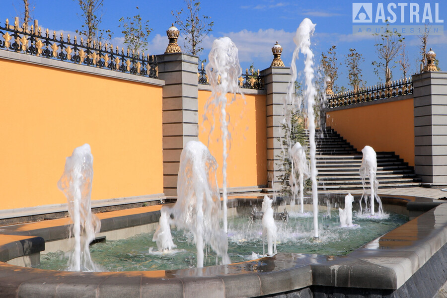 Фонтан с ротационными и пенными форсунками размером 5,0 х 10,0 м в ЖК "Дефанс Хаузинг", г. Ереван
