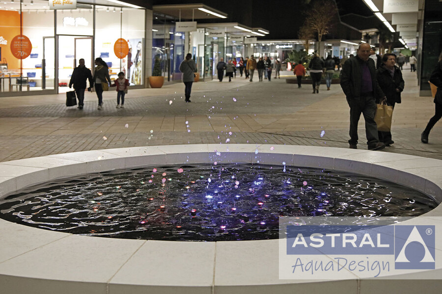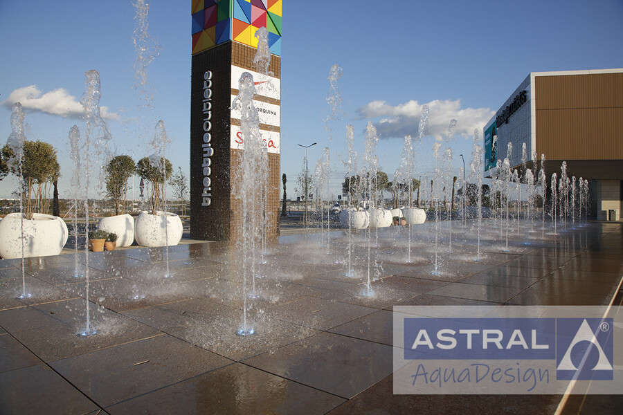 Торговый центр Viladecans построен в 2016 году, на сегодняшний день это один из крупнейших аутлетов в Европе. Центральный вход украшает пешеходный фонтан-подиум украшает. Десятки вертикальных струй в сочетании с туманными насадками FOG NOZZLE создают водную композицию. Еще один фонтан расположен на одной из улиц аутлета. Его изюминкой является необычный водный эффект «парящие капли».