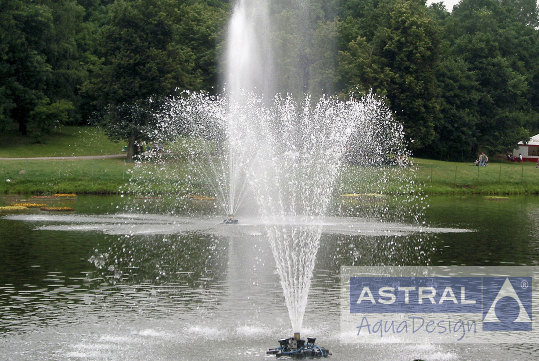 Установка плавающих фонтанов в парке Кузьминки в Москве