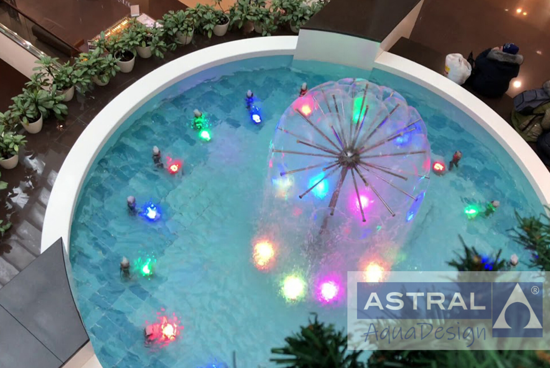 Цветодинамический фонтан в торговом центре в Новосибирске