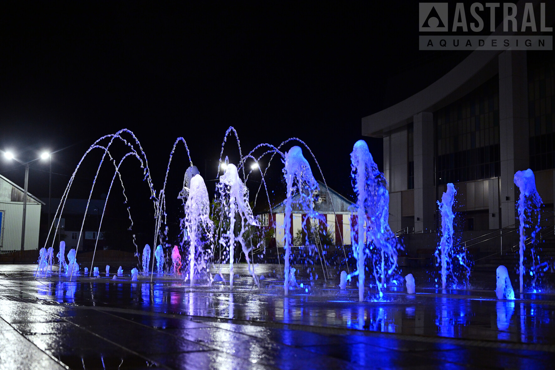 Строительство пешеходного динамического фонтана перед КСК "Геолог" размером 30х10 м, г. Тарко-Сале