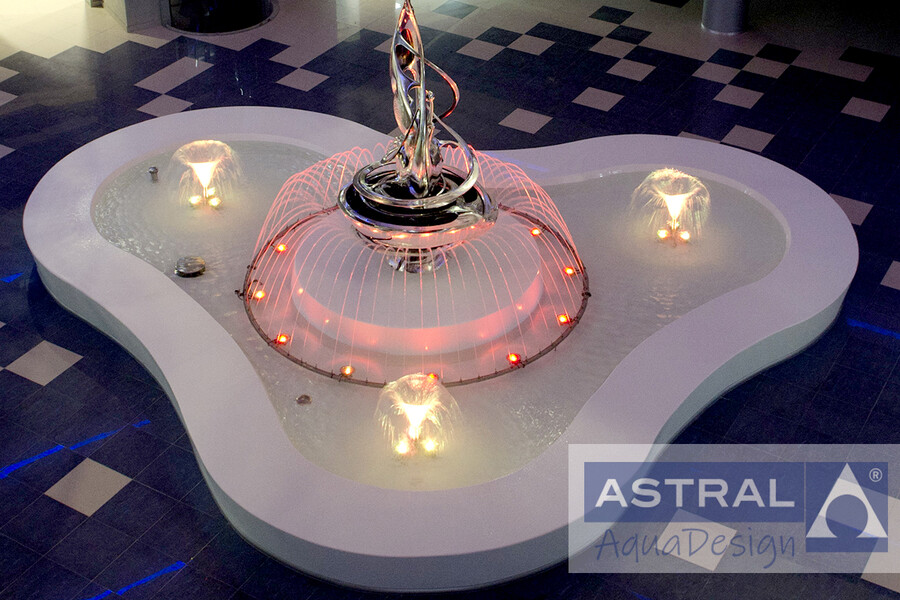 В атриуме ТРЦ Гэлакси в Улан-Уде построен цветодинамический интерьерный фонтан. Его футуристические формы подстать названию торгового комплекса имеют плавные изгибы и белоснежные борта чаши. В его центре - скульптура выполненная из металла созданная местным скульптором Дмитрием Будожабай. За водный рисунок отвечает фонтанное кольцо (диаетром 4 метра) и три пленочных насадки.