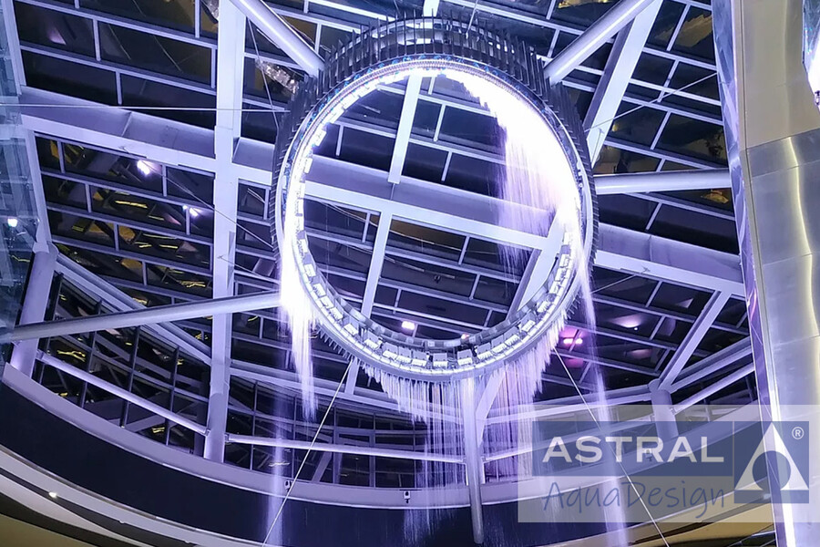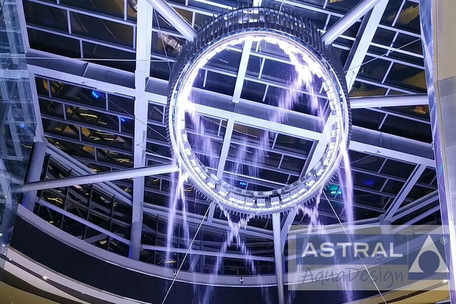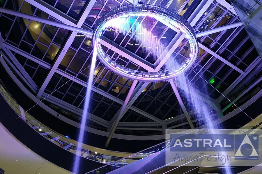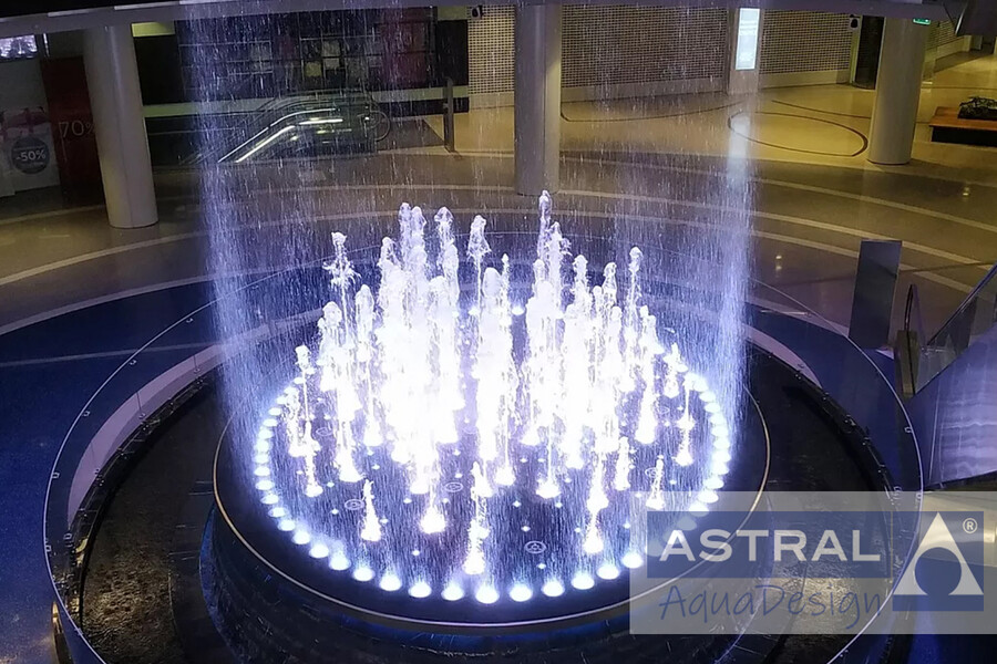Фонтанный комплекс появился с ТЦ Каширская плаза в 2018 году. Его изюминкой является цифровой водопад позволяющий создавать из водных струй замысловатые узоры. Нижняя часть комплекса выполнена в виде фонтана с круглой чашей. Основу водной композиции составляют пенные струи которые создают насадки Foamy. По краям чаши установлены несколько водных пушек Glassy которые создают гладкие струи обрамляющие центральную часть.