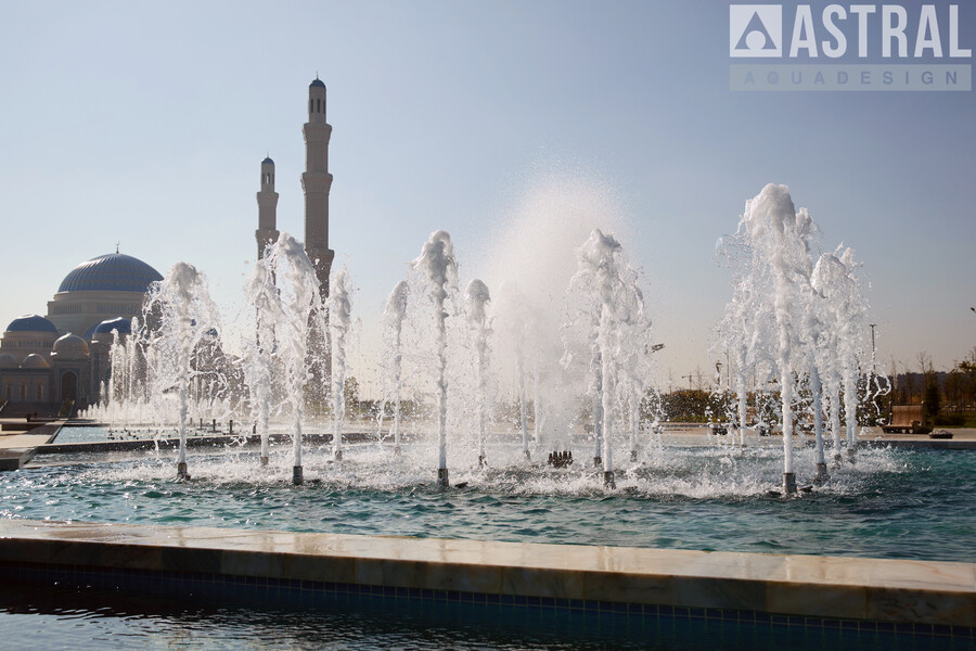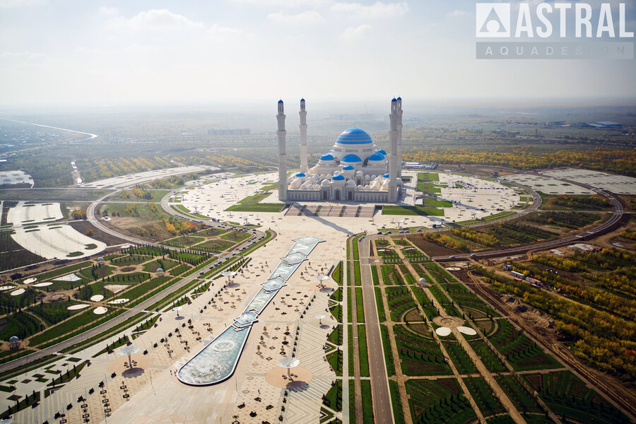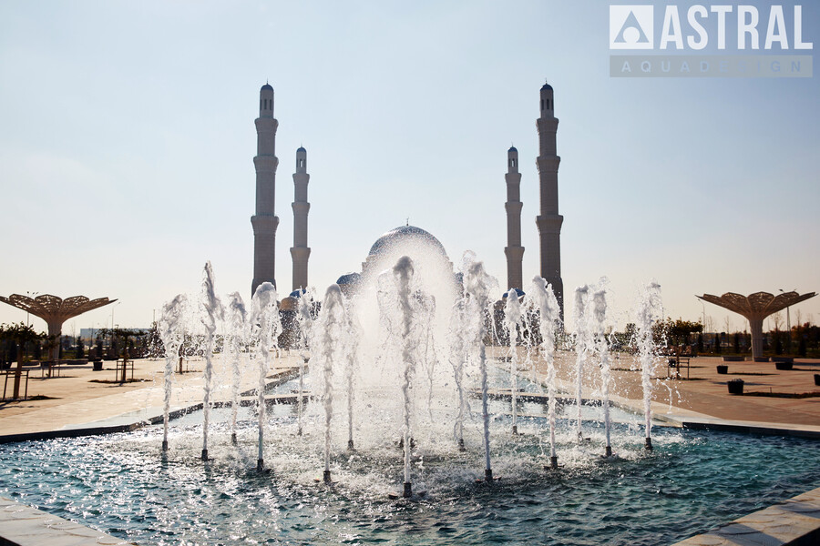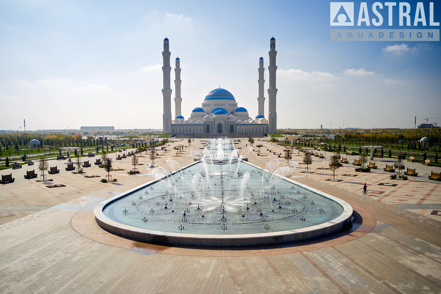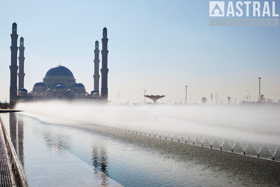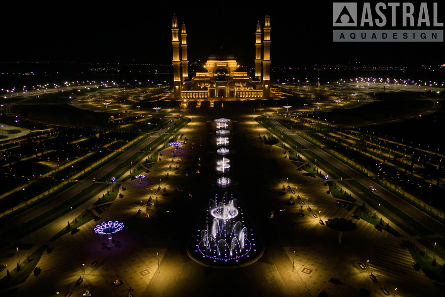 Казахстан снова поражает своими масштабами благоустройства территории. Очередным шедевром строительства стало Водное шоу возле Соборной мечети в Астане. Общая длина фонтанного комплекса составляет 510 метров, а ширина - 35 метров.